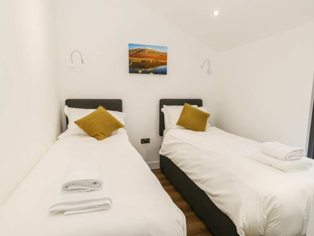 A contemporary log cabin enjoying an idyllic, elevated location in the countryside of the Lake District National Park, three miles from Bowness-on-Windermere. Offering stylish accommodation for up to four people, make Thornyfield Lodge the base for a fun-packed family getaway. Be greeted into this Lakes hideaway by its up-to-date, open-plan living room; its well-equipped kitchen, lovely dining table and cosy sitting area featuring a woodburning stove and Smart TV make it a desirable space to put your feet up when you're not out exploring this region. A lavish shower room and a separate cloakroom provide spots to get ready for each day in style. The two bedrooms in the property are decorated in a similarly immaculate fashion, one offers zip/link beds for flexibility. Wander outside in the sunny weather, where you have the luxury of choosing between a calming decking area or a scenery-engulfed hot tub to truly relax. The ever-popular town of Bowness-on-Windermere is just a short drive away, here you can find something for everybody to enjoy from the unforgettable boat trips to the World of Beatrix Potter and the Old Laundry Theatre. If you can peel yourselves away from this fabulous inland resort, renowned destinations nearby include Ambleside and Kendal, both promising a fun day trip. Bring your family to this heart-warming lodge for a holiday brimming with scenery, laughter and adventure. All ground floor (steps up to property). Two bedrooms: 1 x double, 1 x twin (zip/link, can be king-size on request). Shower room with shower only, cloakroom with basin and WC. Open-plan living room with kitchen, dining area and sitting area with woodburning stove. External utility. Amenities for Rental Underfloor heating from ground floor air source heat pump, woodburning stove Electric oven and hob, microwave, fridge/freezer, washing machine, tumble dryer, dishwasher, Smart TV, WiFi Fuel, power and starter pack inc. in rent Bed linen and towels inc. in rent Travel cot and highchair available on request Ample off road parking Lockable storage Decking with hot tub, enclosed decking with furniture. 1 well-behaved dog welcome Sorry, no smoking Shop 4 miles and pub 1 mile Note: Although decking is enclosed, the landscape nearby is steep and rocky, children to be supervised when outside Note: There is an electric car charging point at the property Note: This property has a Good Housekeeping Bond of £200.00. Please Note - There will be building work on a neighbouring property from November 2019 to April 2020 which may cause slight disruption during your stay.