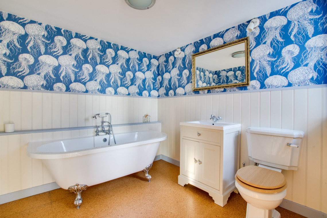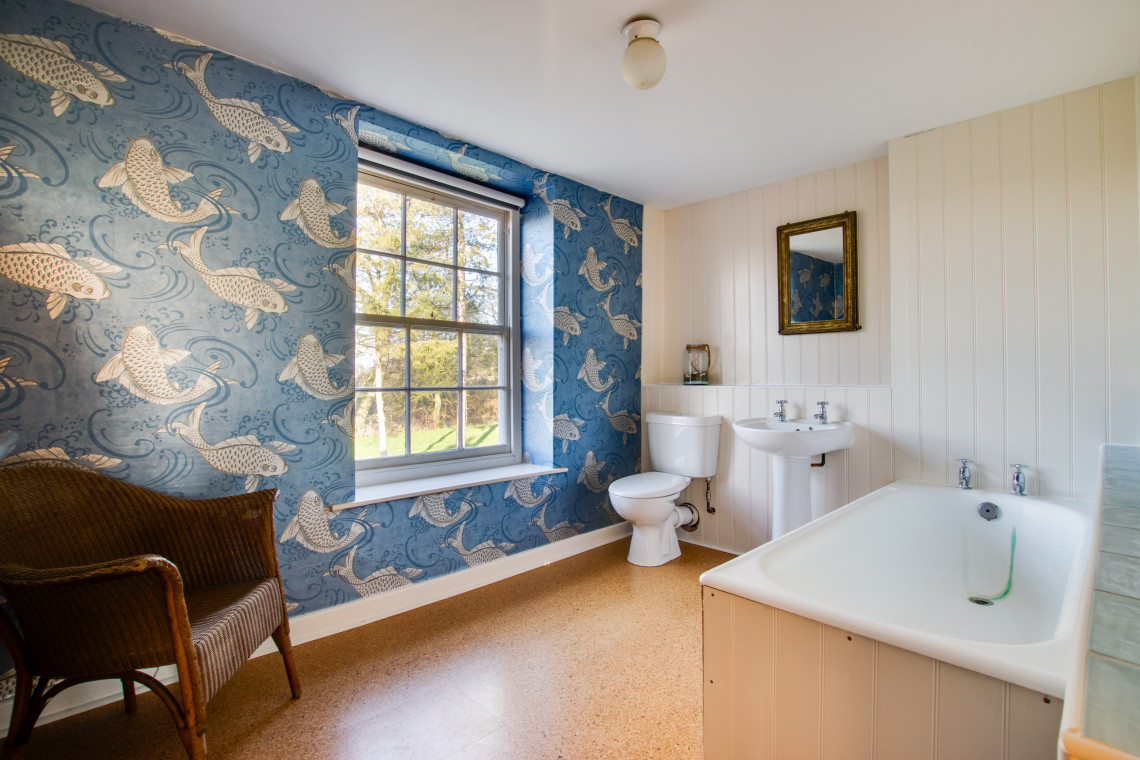 Upstairs you will find three very generous bedrooms. The master suite is a wonderful room with views across to the garden and pond. It plays host to a beautifully designed en suite equipped with roll top bath and striking wallpaper. Two further bedrooms have been carefully designed to ensure you have a comfortable night's rest and feels like a home away from home.