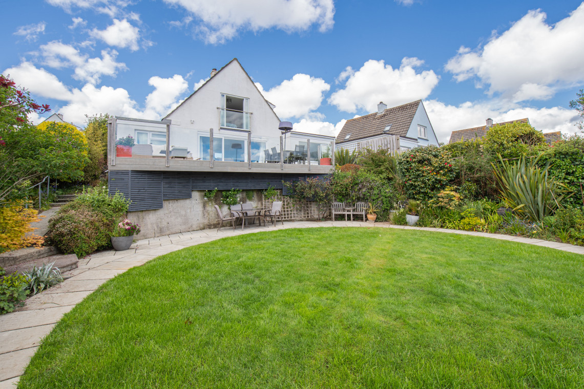 - Outside: New large deck with garden furniture. Enclosed rear terraced garden with lawned area, garden furniture and electric barbecue. Summer House with seating.