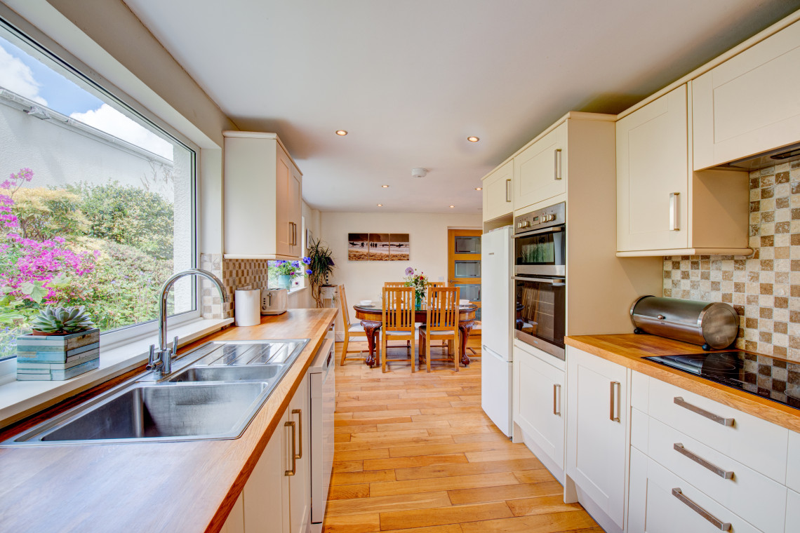- Kitchen and utilities: Electric double oven, ceramic hob, fridge/freezer and dishwasher.