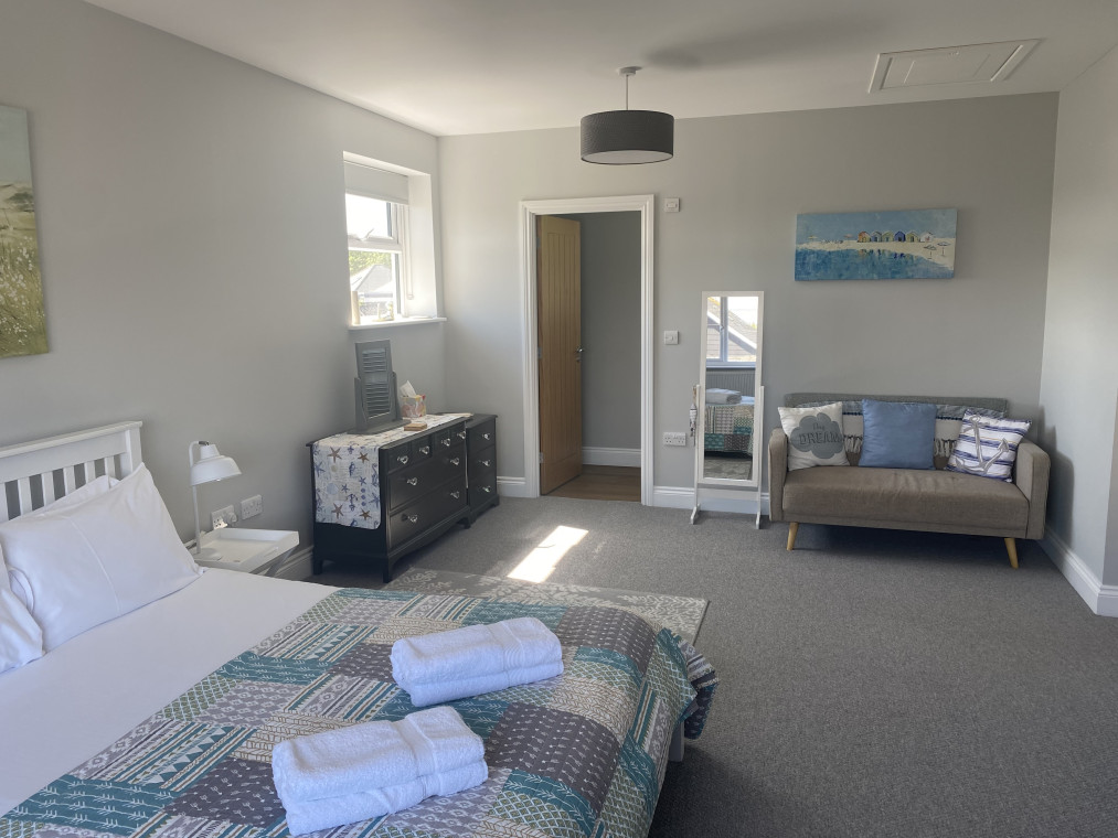 The converted garage is ideal for changing after a day in the sea with space for hanging wetsuits to dry, and the downstairs shower will get you warm and clean, ready to do it all again tomorrow!