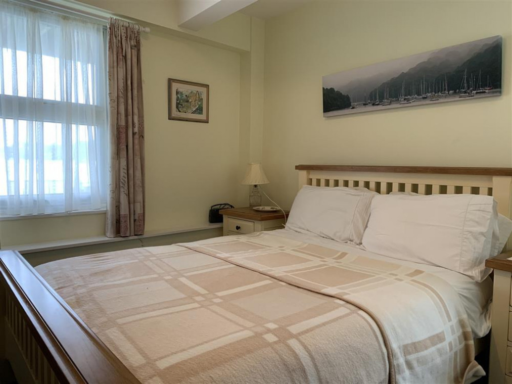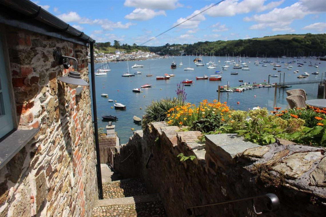 Two steps from the front door and a shared path lead to the gated entrance to the enclosed patio overlooking Fowey, the estuary and surrounding creaks. Although the patio is enclosed by a wall there is a gate and steps down to the Estuary with its own mooring. Wooden table and chairs and a built in bbq are ideal for enjoying lazy days and watching the world go by. A further concrete path to the side of the property with two steps lead you to the water.