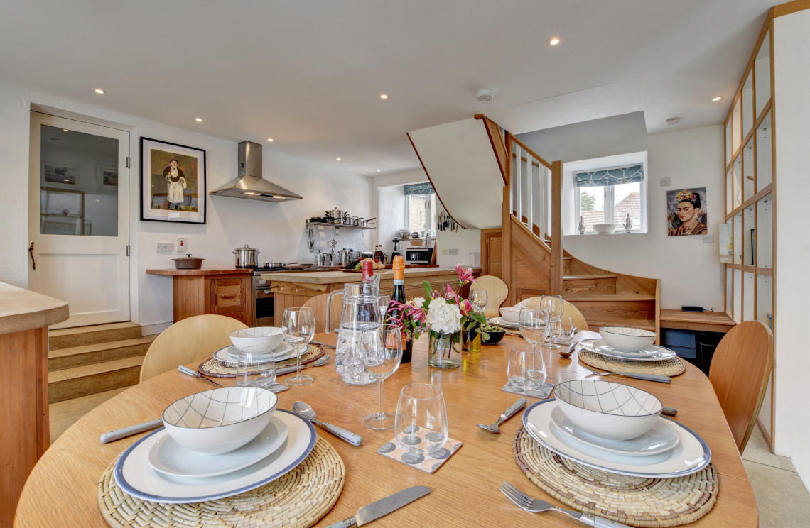 Beautiful barn conversion with amazing views from the garden. Situated on the edge of one of the prettiest villages in North Devon. Berrynarbor is very close to the dramatic coastline of North Devon with Combe Martin only being 2 miles away and Exmoor a short drive. The village boasts 2 pubs and a small shop offering local produce. This light and spacious split-level property has touches of Mexico throughout from the owner’s family travels, with a spacious open plan kitchen/dining/living room. The living area has a woodburner for those cooler nights. Upstairs the Bedrooms have washed wooden vaulted ceilings, the first bedroom with a Superking size bed and additional single bed. Bedroom two with zip n link King or twins and additional single bed. Bedroom three with double bed. Family bathroom/WC and separate shower room/WC. Delightful enclosed lawned garden with patio area, feature arbour walkway.