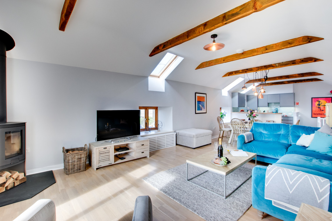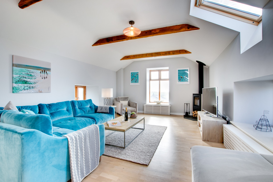 - Kitchen and utilities: Gas hob, electric oven, dishwasher, fridge/freezer, Miele washer/dryer. Large corner Loaf sofa and armchair, Smart TV, Smart DVD player, Apple Box, Sonos speaker, wood-burning stove, countryside and sea views.