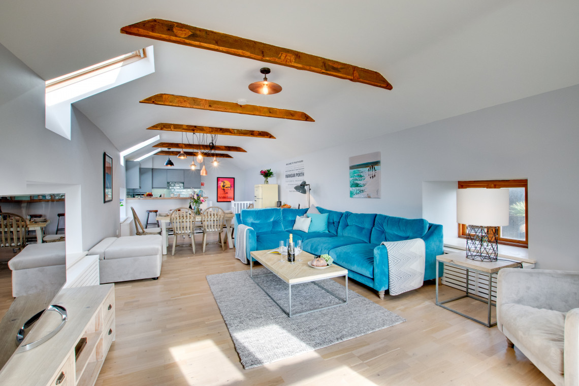 The village of Mawgan Porth has a surf school, coffee shops, convenience store and a great local pub. Watergate bay is the next bay along, filled with various eateries and a great beach for surfers. The Bedruthan hotel is just down the road, welcoming non-residents to use the spa and to enjoy food and drink at the Wild Café.