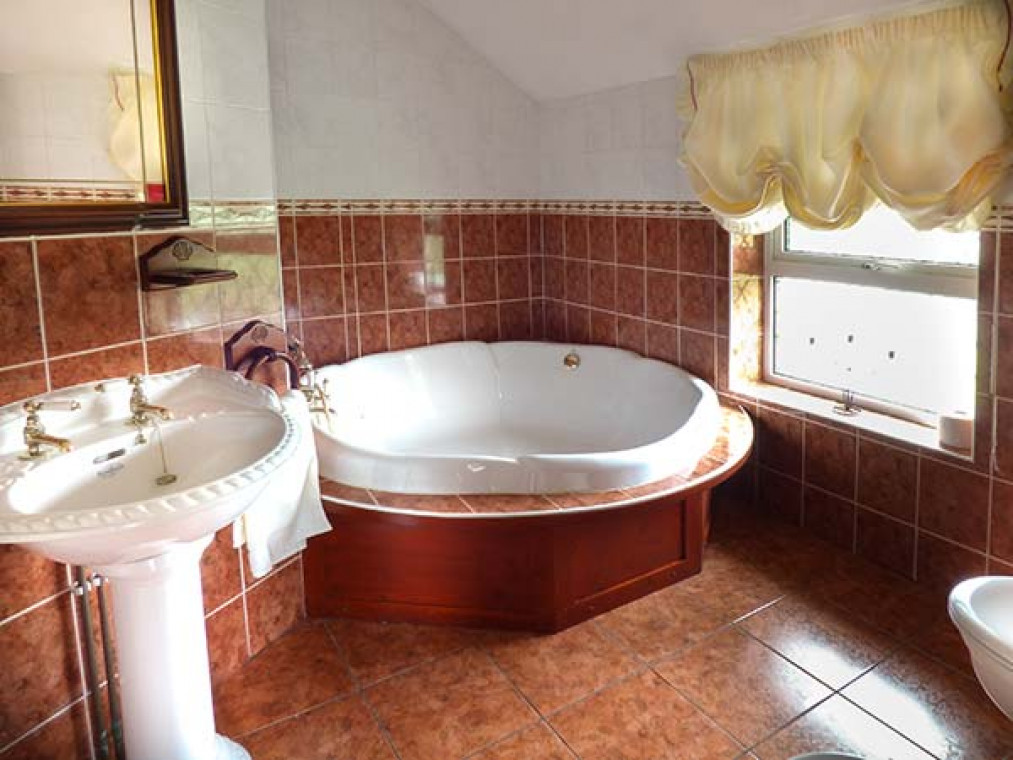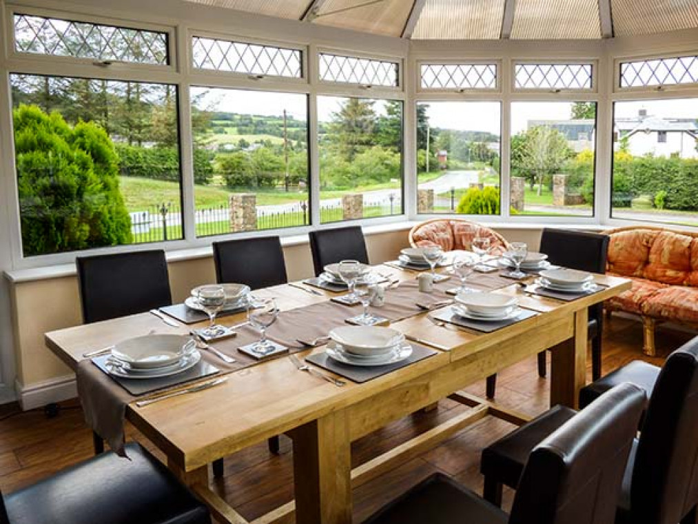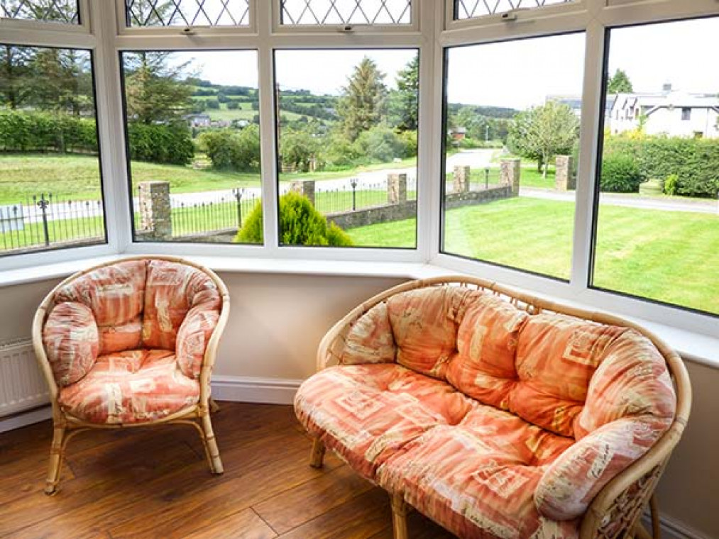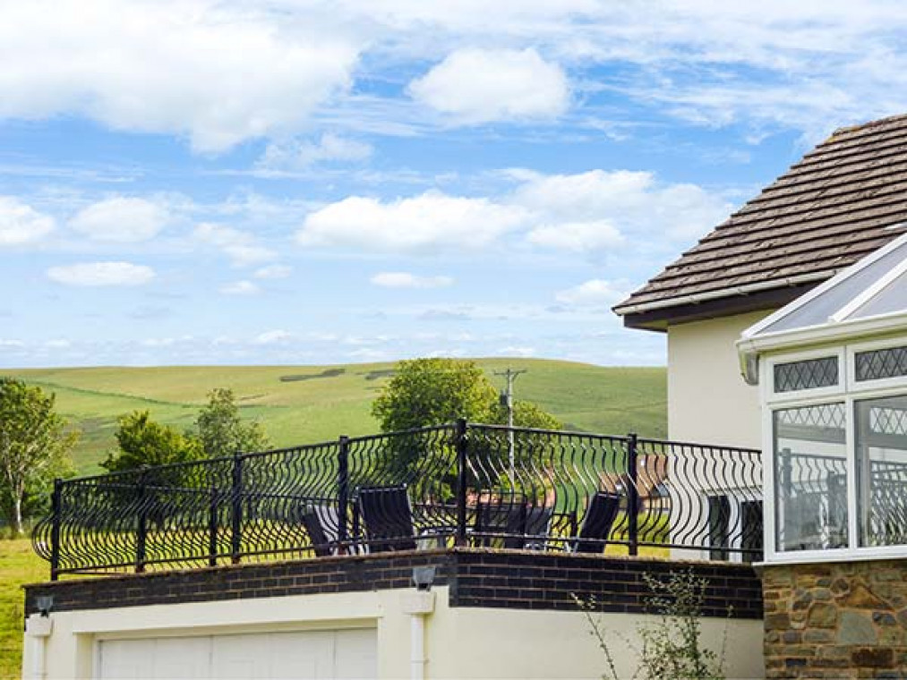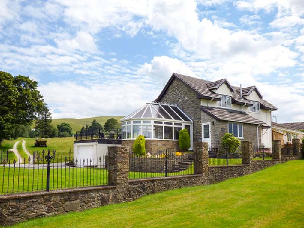Rhayader 3 miles. A spacious detached property, on the edge of the small hamlet of St Harmon, close to the nature reserve of Gilfach and just a short drive from the thriving town of Rhayader, a perfect base for families or friends to relax after days spent exploring the many mountains and lakes of Mid Wales. Set over two floors, there are three comfortable bedrooms, each with a luxury en-suite, along with a family shower room and a handy cloakroom on the ground floor. The well-equipped kitchen with breakfast area and comfy seating is made cosy on chilly evenings by the addition of a warming woodburner. There is also a large sitting room where everyone can enjoy spending time together, with a pool table and bar, leading onto the dining room in the conservatory with comfy seating - a great space where you can sit down to a hearty family meal after a busy day exploring. Outside, you can relax on the raised veranda and admire the far-reaching views across the lawns and beyond. The village is surrounded by beautiful countryside and is perfect for exploring the Cambrian Mountains and border countryside of Wales. Rhayader is just 3 miles away, a perfect town to enjoy a morning coffee, an evening meal or a tour of the home of Welsh Royal Crystal. The area offers numerous opportunities to enjoy the great outdoors with Gilfach Nature Reserve just 2 miles away, criss-crossed with pathways, whilst the Elan Valley, with its formidable Victorian stone dam is less than 7 miles away. This is a truly stunning area in the Cambrian Mountains; with a diverse landscape and a haven for rare flora and fauna, you’ll find ample opportunities to enjoy cycling, fishing, walking and even stargazing. Take a day trip to the literary town of Hay-on-Wye or to the pretty market town of Brecon, or take a dip in Cardigan Bay at Aberystwyth - all within an hour’s drive. This is a perfect base for exploring the mountain countryside and Elan Valley lakes and is ideal for families and friends to relax after busy days out. Three bedrooms: 1 x king-size double with TV and en-suite wet room shower, basin and WC, 1 x double with en-suite bath, basin and WC, 1 x family room with 3 singles and en-suite shower , basin and WC. Ground floor shower room with shower, basin and WC. Ground floor basin and WC. Kitchen with breakfast area and woodburner. Utility. Sitting room with bar and pool table. Conservatory with dining area. Amenities for Rental Oil central heating with woodburner Electric range oven and 5-ring hob, microwave, fridge, freezer, washing machine, tumble dryer, dishwasher, TV with Freeview, DVD, WiFi Fuel, power and starter pack for woodburner inc. in rent Bed linen and towels inc. in rent Two travel cots and one highchair on request Off road parking for 3 cars Enclosed raised veranda with furniture plus lawned area Two well-behaved dogs welcome Sorry, no smoking Shop and pub 3 miles Note: Property is accessed and bordered with shared drive.Note this property has a Good Housekeeping Bond £125