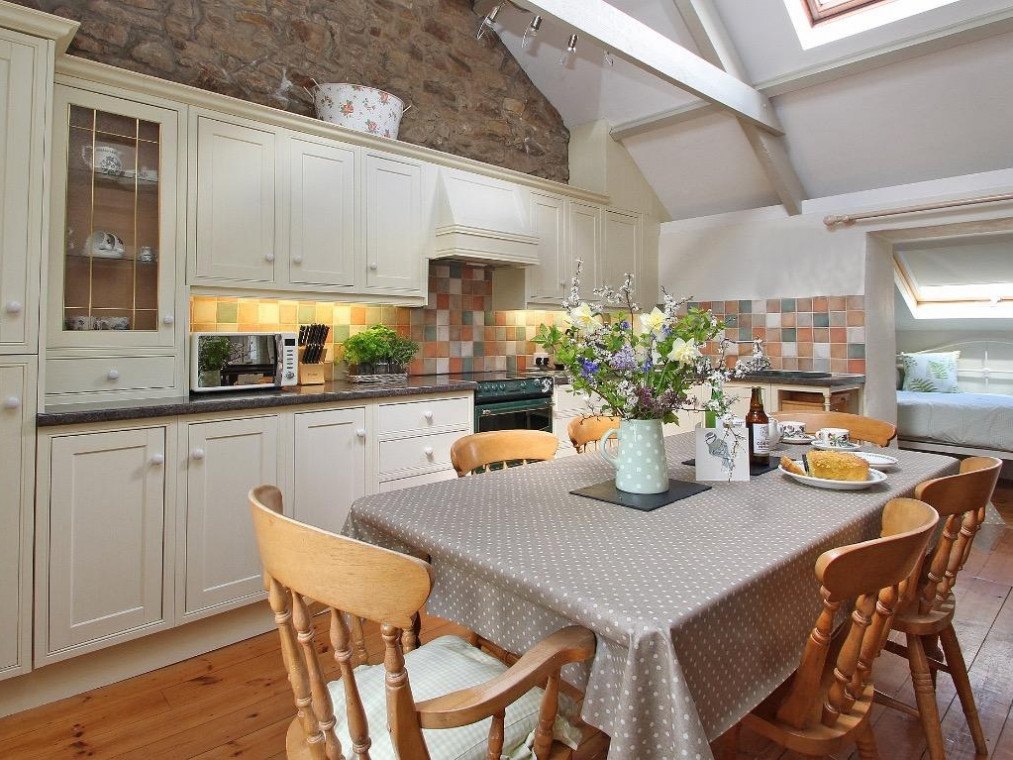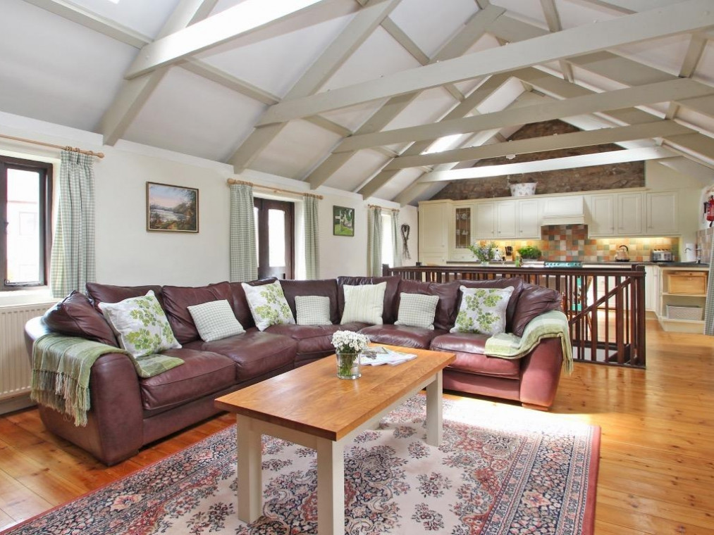 Situated amongst rolling hills, this beautifully converted stone barn provides excellent accommodation near Perranporth, North Cornwall. A stone’s throw from Perranporth beach this is an ideal escape for a family, friends or couples holiday. Walk into the barn and you will find a reverse-living layout with two gorgeous bedrooms on the ground floor and a fabulous conservatory ideal for relaxing in with a good book. Take the stairs to the first floor and the space opens out to reveal an open plan living area with a fully equipped kitchen, sumptuous leather sofas and all topped off with a wood burning stove to warm those toes on a cold evening. Here you will also find a single bedroom, tucked away off the kitchen and separated by a privacy screen – ideal for a young child wanting to stargaze through the skylight. Outside the patio is a perfect area to prepare those balmy evening barbecues while the children play on the large lawn area. Escape to the summer house for some quiet reading time or shelter from the sun. One of three properties within a courtyard setting and found down a quiet farm lane, this barn is an absolute must for those looking for a traditional holiday with a touch of luxury. Close to Perranporth beach with its golden sands and clear waters, St Agnes and Truro, all perfect for some fabulous days out or how about a drive to the amazing Eden Project, the Blue Reef Aquarium or the Lost Gardens of Heligan. Walkers will delight at the breathtaking cliff walks where you will find hidden coves, caves and white sandy beaches along the West Cornwall coastal path. As if all this isn’t enough, awaiting your arrival will be homemade cake and a selection of ciders to sample. Whatever the time of year, this barn has everything to make your holiday dreams come true. Three bedrooms: 1 x king ground floor, 1 x triple ground floor, 1 x single. Conservatory. Bathroom with Bath, Basin, WC, and Shower Cubicle. Second Bathroom with Shower Cubicle, Basin and WC. First floor: open plan living area with kitchen and sitting area Amenities for Rental Oil fired central heating Wood burning stove Electric oven and hob, microwave, fridge, washing machine, tumble dryer, dishwasher TV with full Sky package, DVD, iPod dock Limited WiFi due to location Fuel and power inc. in rent Bed linen and towels inc. in rent Cot and highchair available on request Off road parking for 2 cars Garden with summerhouse, patio area, seating and barbecue. 2 pets welcome at £10 per pet, per week Sorry, no smoking Shops and pubs 1.5 miles away Beach and restaurants 3 miles away.
