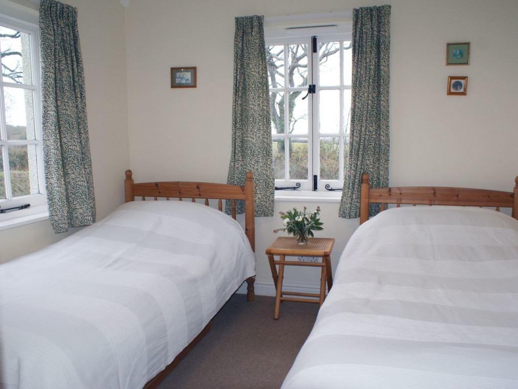This smart, comfortable, detached holiday home, possibly of Victorian origin, sits peacefully 200 yards away from its nearest neighbours in Treburtle, a hamlet of scattered cottages deep in Cornish farmland and woodland. Set very privately in a big, lawned garden, you can enjoy a spot of trout fishing (by arrangement) in the River Ottery, which flows gently by approximately 600 yards away and accessible via a bridlepath. Inside there's a light and airy length of house sitting room with wood burning stove and dining area with French doors to the garden. Excellent, well-equipped, little kitchen for cooking up a feast and a ground floor shower room. Upstairs, three cosy bedrooms, a double with lovely long views to Dartmoor and two twins, one of which has a good view, sharing wardrobe space on the landing. A family bathroom also benefits from those superb views. Relax after a day exploring in the big, mostly lawned garden surrounded by Cornish banks and fence with plenty of space for youngsters to let off steam. There are wonderful woods to roam, rich in bluebells throughout spring, or head for the superb, sandy beach at Crackington Haven 9 miles away. If you fancy a touch of retail therapy, good shops and restaurants abound in Launceston (7 miles), where you can also play golf, and Bude (15 miles), both a pleasant drive through countryside away. Treburtle Cottage is a very quiet and superbly relaxing spot handily placed for exploring this delightful part of Cornwall at any time of the year. Three bedrooms: a king size double, two twin bedrooms and a bathroom with bath, basin and WC on the first floor and a shower room with shower, basin and WC on the ground floor. Sitting room with wood burning stove and dining area. Kitchen. Entrance hall. Amenities for Rental Central heating with wood burning stove Microwave, fridge-freezer, washer-dryer, dishwasher, TV, WiFi, Phone incoming calls only only, Fuel and power inc. in rent Bed linen inc. in rent Cot and highchair available on request Off road parking for two cars Enclosed garden Two well-behaved dogs welcome, Sorry no smoking Note: Towels are not provided at this property.
