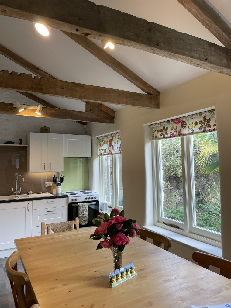 The Coach House, extensively renovated in Spring 2024, a spacious cottage with 3 bedrooms, sleeping 6+, with a wonderful secret garden, the high walls of which were the old grain mill. Prices range from £860/week wood included, to £1710/week full house (7 occupancy), less 2.5% for two weeks, LESS 10% for 2 only. Short breaks from 2 nights at £560. Please enquire