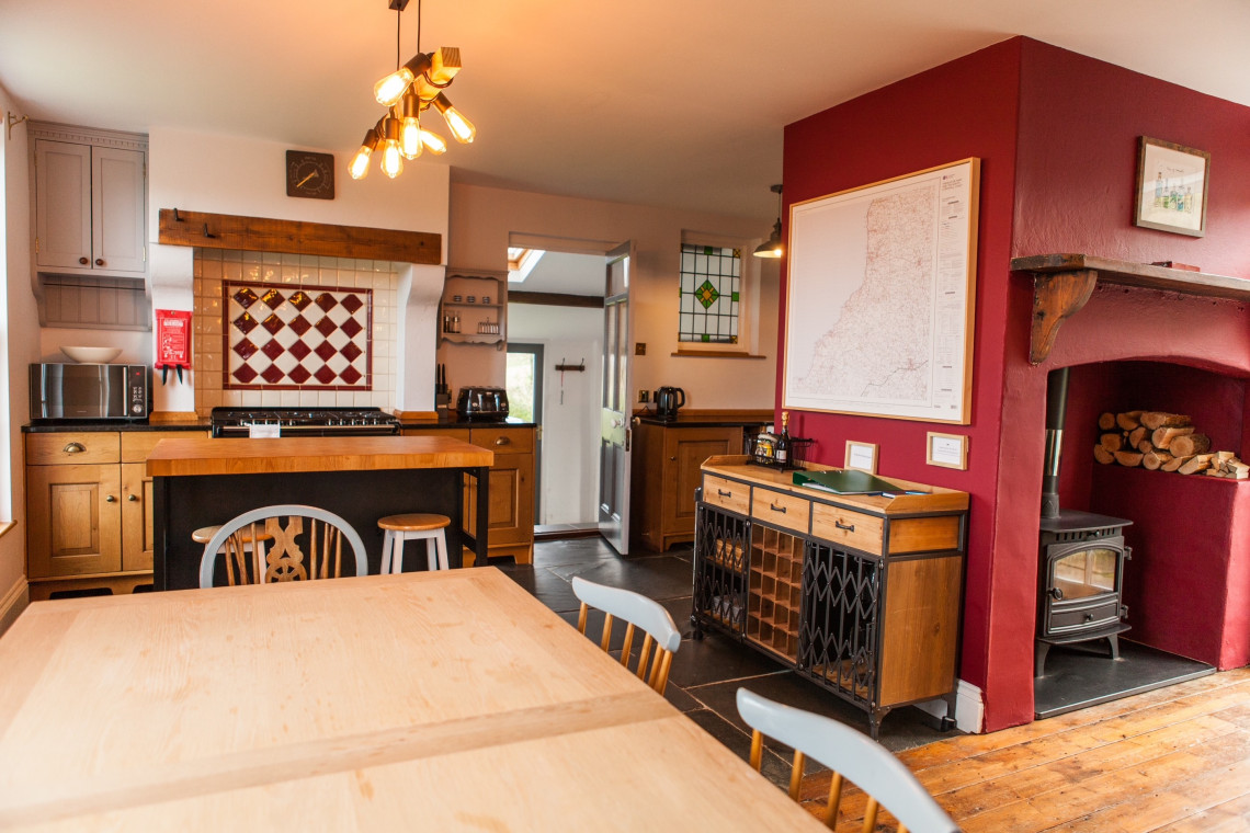Trengayor is situated near Bude with easy access not far off the A39, but far enough you feel like you are away from it all. For shopping and essentials, you will need to drive, though. Pulling up to the holiday home it looks smaller on the outside but walking in was somewhat of a Tardis. A fantastic layout of rooms perfect for any dog owner with easy clean hard floors for those muddy walks and a choice of entrance doors. The kitchen is the main feature of downstairs, combining both a kitchen diner, an island to sit at, a beautiful wood burner and a seating area. You will probably find that you spend most of your time here.