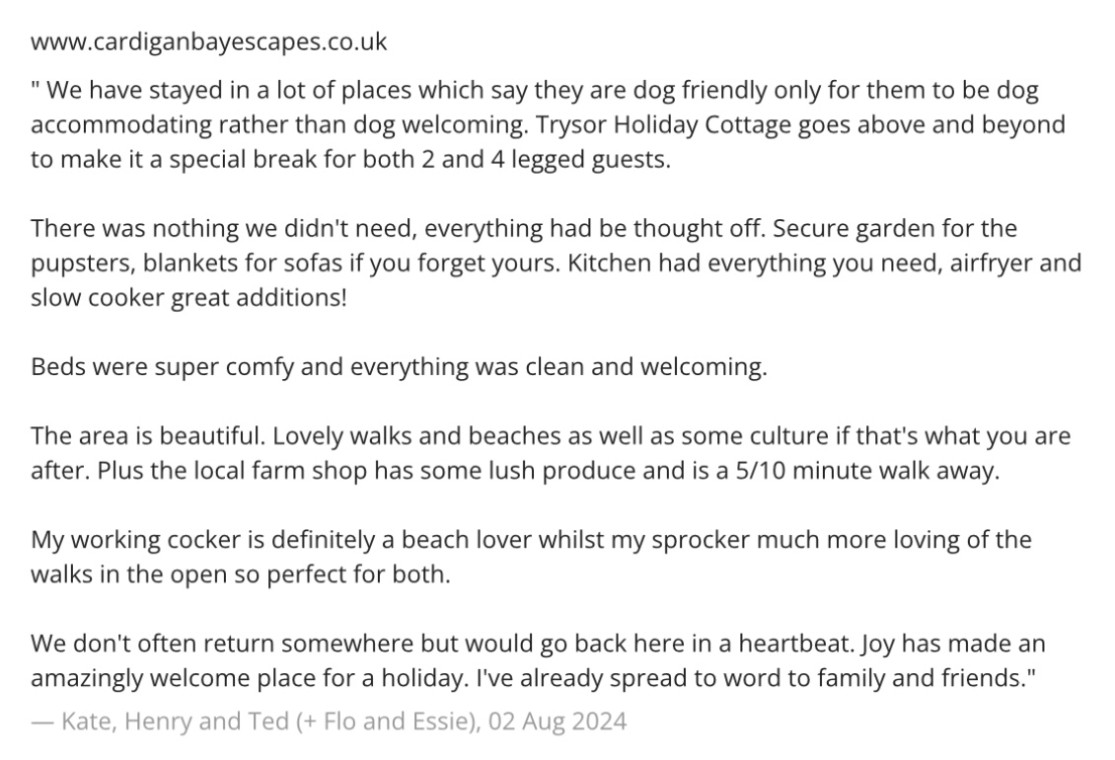 Book direct, best price guarantee and excellent 5* guest reviews. Trysor (Treasure in Welsh) Holiday Cottage has three double bedrooms that sleeps 6 + cot and we are child & dog friendly. 🐾