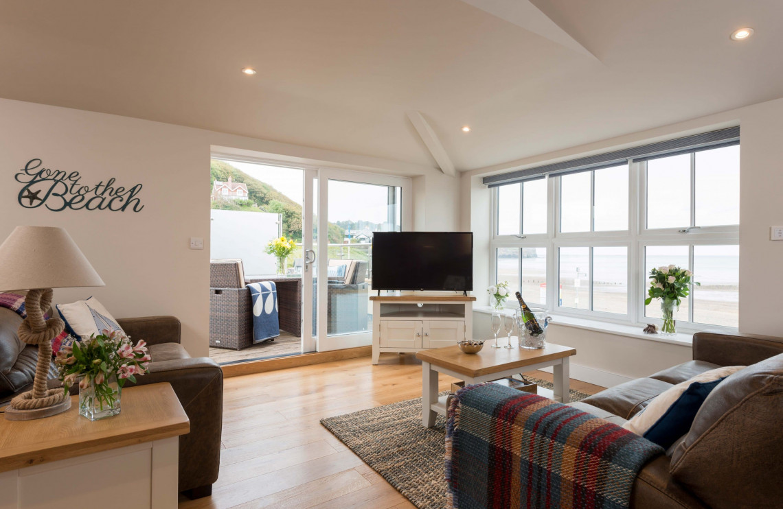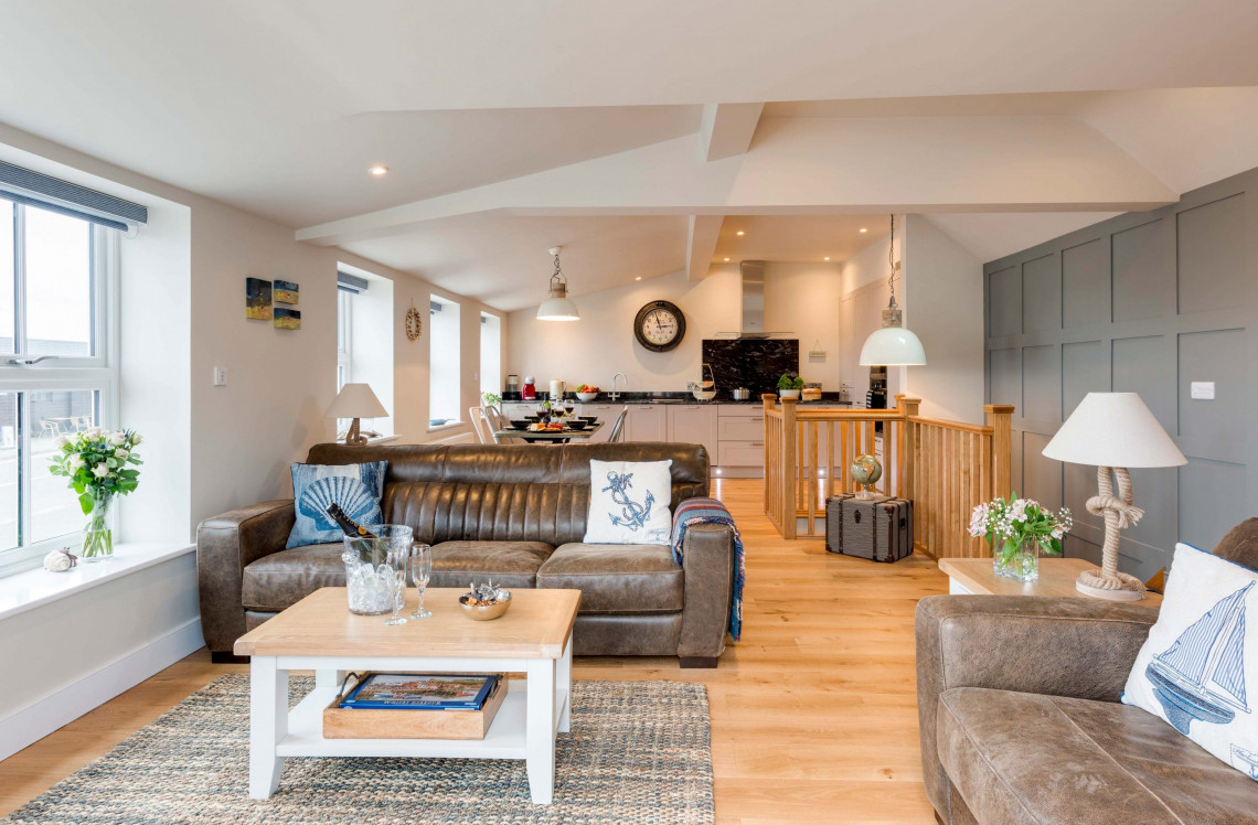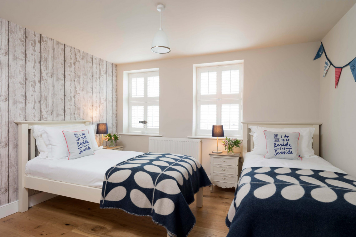 This lovely cottage has two beautiful bedrooms, one is a double with a king size bed and a stylish en-suite bathroom with bath, shower, WC and hand wash basin. The second bedroom, with its bunting and beach-inspired accessories, is a twin room with two full size single beds, TV and an en-suite shower room with large walk-in shower, WC and hand wash basin. The first floor is dedicated to a wonderful, vast open-plan living space to take advantage of the amazing views. There is a sitting room area with TV/DVD, dining space for enjoying meals together and a stylish kitchen with granite work surfaces, integrated dishwasher, oven, induction hob, fridge freezer and microwave. The property also has a utility room with a washing machine and dryer plus a WC/cloakroom off the living area. French doors open onto a fabulous balcony, with table and chairs. Amenities for Rental