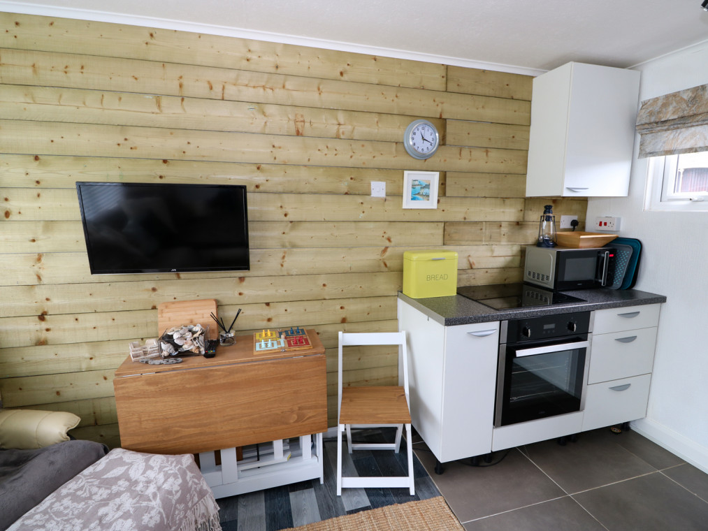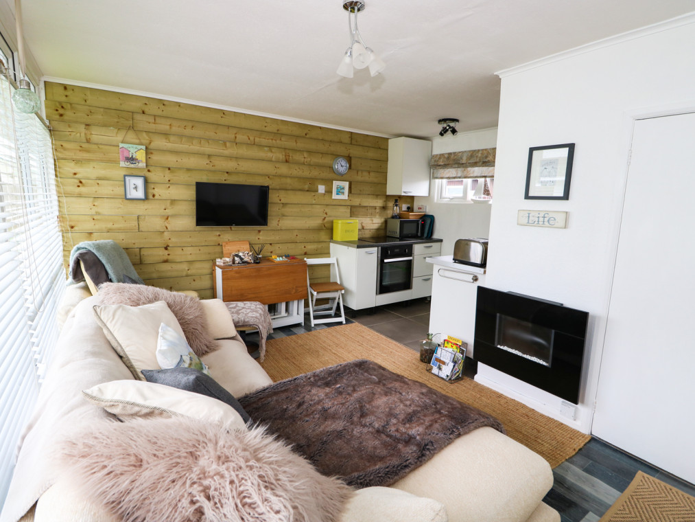 Situated in a quiet corner of Cherry Park, Two Fat Ladies is well presented chalet 10 minutes’ walk to the village centre of Chapel St Leonards. Perfect for a family or couples, you are just a short walk from the Blue Flag beach and local amenities. Furnished to a contemporary standard, Two Fat Ladies has an open plan living area boasting a stylish feature wooden-clad wall offering a beach hut feel, with an inviting L-shaped sofa perfect for resting tired legs after a coastal walk. Prepare picnics in the compact kitchen to take on days out, or to enjoy outside on the well-kept lawns. The accommodation is completed by two welcoming double bedrooms with storage and a family bathroom. Outside you have a seating area where you can enjoy a morning coffee. Close to a variety of shops, takeaways and pubs, you are spoilt for choice when it comes to deciding what to have to eat. The village of Chapel St Leonards is just a short walk away, explore traditional shops, cafes and pubs, or walk along the sandy beach and admire the bright beach huts. You can hire motorboats from the leisure centre, or enjoy a family game of crazy golf. Also nearby is a wonderful nature reserve filled with all sorts of wildlife, great for an afternoon stroll. A 15 minute drive takes you to the popular seaside town of Skegness, home to a Blue Flag beach and an excellent range of attractions for the whole family. A superb bolthole for a Lincolnshire seaside holiday. All ground floor. Two bedrooms: 2 x double. Bathroom with bath, shower over, basin and WC. Open plan living area with kitchen, dining area and sitting area with electric fire. Amenities for Rental Electric heating with electric fire Electric oven and induction hob, microwave, fridge, smart TV with Freeview, DVD, Wifi through cherry park reception Fuel and power inc. in rent Bed linen and towels inc. in rent Off road parking for one car in car park One well behaved dog welcome Sorry, no smoking Shop 0.4 miles, pub 200 feet