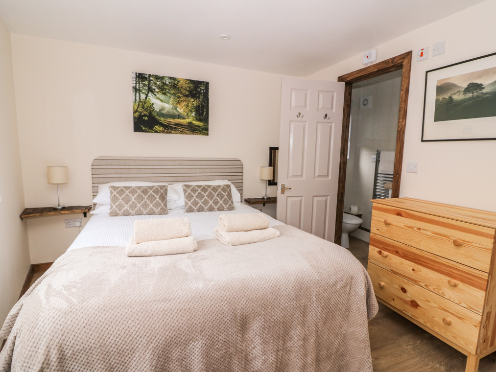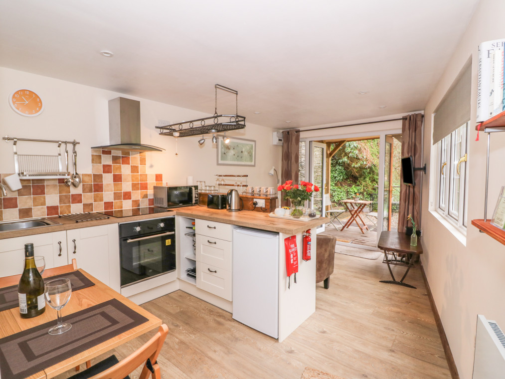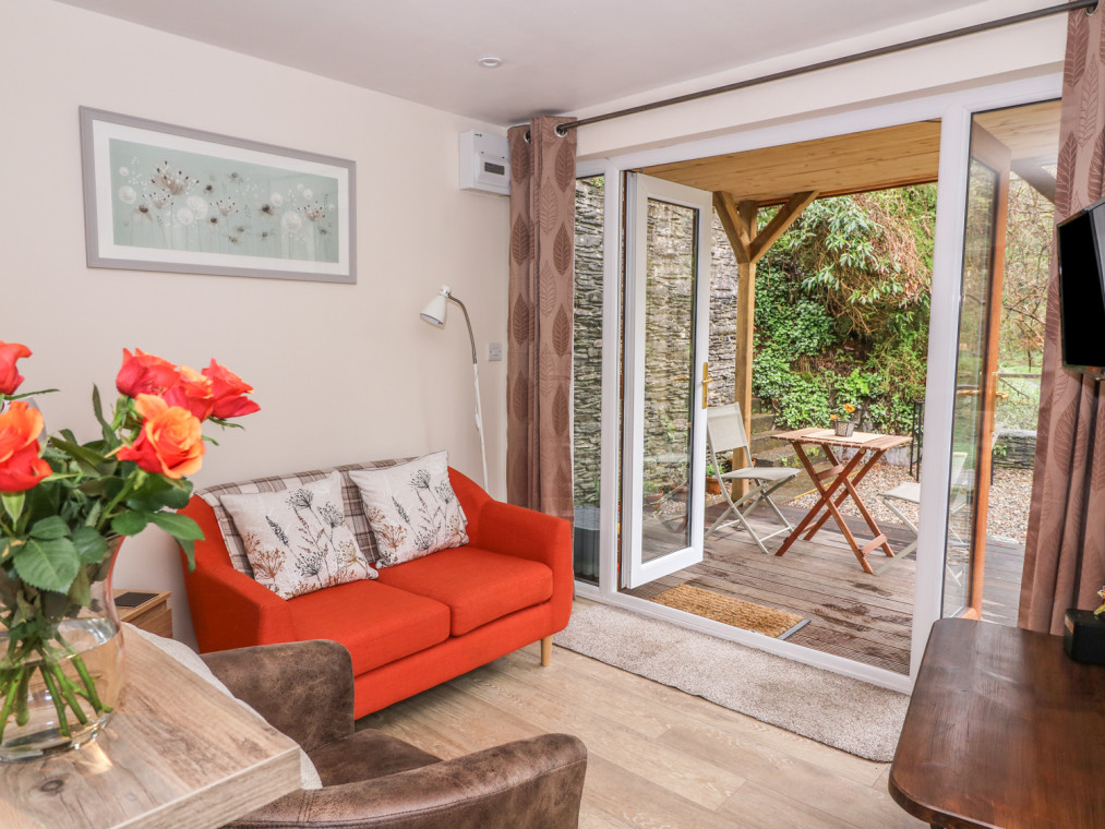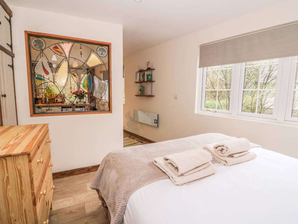 Newcastle Emlyn 4.5 miles. This is a quirky yet contemporary cottage based near the market town of Newcastle Emlyn in Carmarthenshire, Wales. Its idyllic location and free-flowing living area, this is the ideal stay for a couple wanting a peaceful getaway. Walk up the steps to Ty Barddu and enter this stylish property. Walk through the patio doors and into the sitting area, a great relaxing spot with comfortable seating and a Smart TV, why not put your feet up and watch your favourite film? Head on through to the kitchen dining area and you'll discover the well-equipped and sumptuous kitchen with dining furniture for 2 people. To the back of Ty Barddu, separated by an outstanding feature screen sculpted by the owner, is a light and bright king size bedroom offering delightful views of the river, it also has a classy en-suite shower room. Whilst staying at this cottage, make sure you spend some time on the outdoor veranda with a glass of wine, listening to Afon Barddu flowing past. The property comes 4.5 miles from Newcastle Emlyn, an excellent market town with a great range of shops, pubs, restaurants and tea rooms to choose from. For you outdoor people there is seemingly endless scenery, walking and cycling paths to make the most of. Nearby is the popular coastal resort of Cardigan, it also offers a variety of amenities as well as a castle to explore. Ty Barddu is an excellently presented cottage in a wonderful location. All ground floor. One king-size double with en-suite shower, basin and WC. Open plan living area with kitchen, dining area and sitting area. Amenities for Rental Electric heating Electric cooker, microwave, fridge, Smart TV, WIFI, selection of books Fuel and power inc. in rent Bed linen and towels inc. in rent Off road parking for 1 car Veranda with a table and chairs and a BBQ One well-behaved dog welcome Sorry, no smoking Shop and pub 4.5 miles Note: There are 10 steps up to this property, therefore it may not be suitable for those with limited mobility.