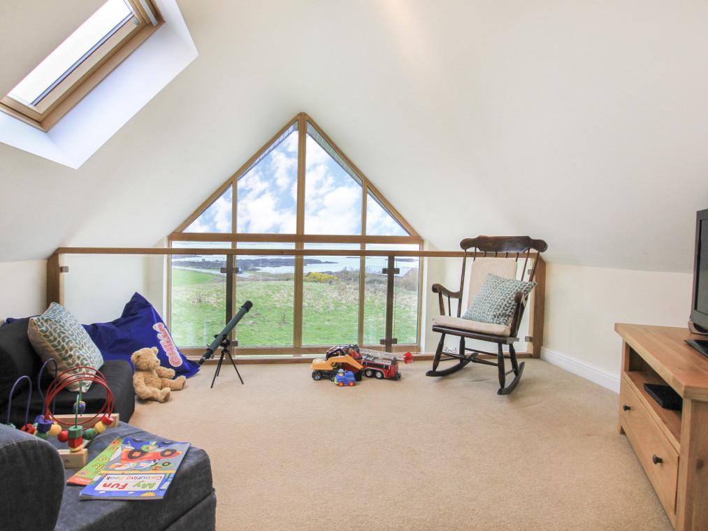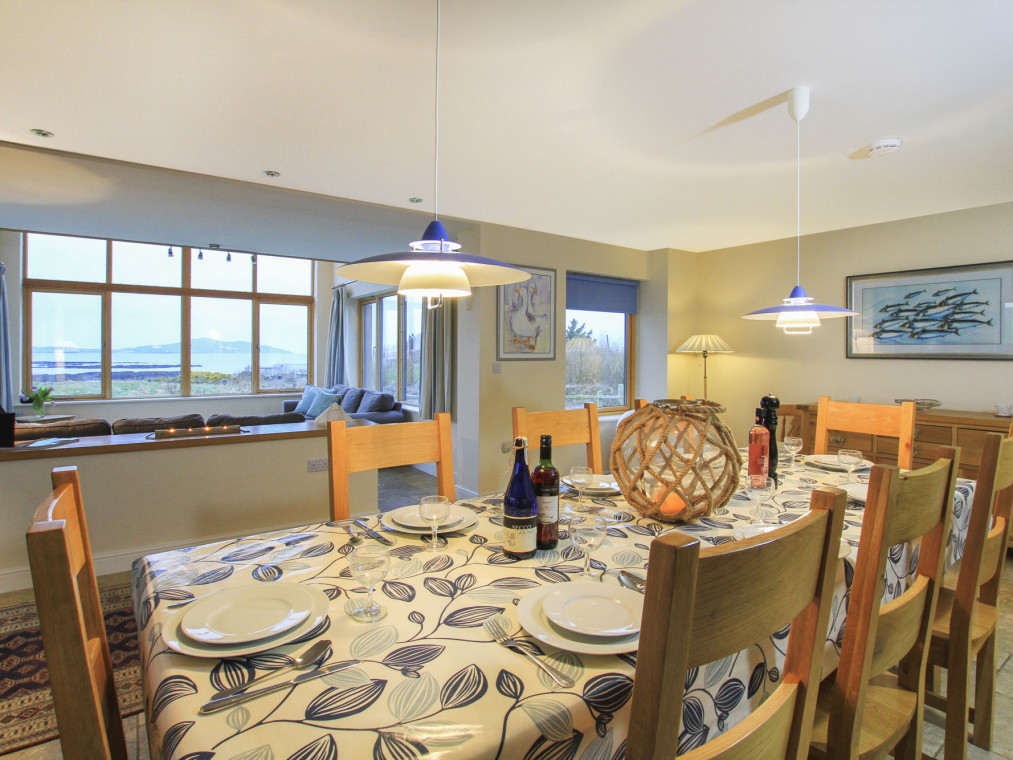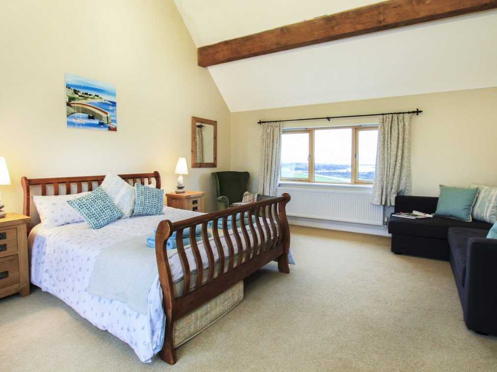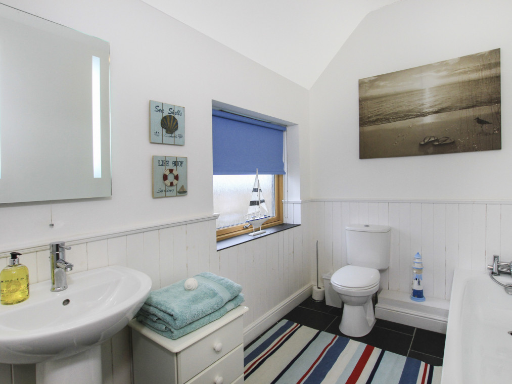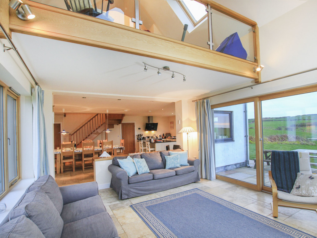 Ty Glan y Mor is a holiday house in a spectacular setting on the island of Anglesey. Inside the house is contemporary, welcoming and bright. Lovely, spacious garden with sandy beaches, walks and attractions nearby. You are sure to make happy memories of a family holiday in North Wales here. The sitting, kitchen and dining areas combine to create a lovely open plan space. The kitchen has all the mod cons including a range oven, fridge, dishwasher, wine cooler, microwave and toaster. The utility is where you’ll find a fridge freezer, washing machine and dryer. There is a large dining table and chairs to sit up to eight people. The stunning sun room has the most amazing picture windows that frame the sea views across the countryside with comfy sofas provided for you. There is a further sitting room with sofas and chairs, a wood burning stove for extra warmth in the winter, a TV and a DVD player. There is also a cosy seating space on the upstairs gallery with a chair, a rocker and a bean bag. A TV, Playstation 2 and games make this the ideal place for children to relax. On the ground floor is a shower room with shower, loo and wash hand basin. The bedrooms consist of a master with king size bed and ensuite with bath, shower, his and hers wash hand basins, loo and wash hand basin. There are also a set of child size bunks in here, so it can be used as a family bedroom A further double bedroom with king size bed also has an ensuite with shower, loo and wash hand basin. There is a further double bedroom and a twin room. The family bathroom has a bath, shower, loo and wash hand basin. The spacious outside space consists of a garden laid to lawn with patio areas and garden furniture. There’s a handy outside warm shower for washing off sandy toes! There is parking for up to three car. There’s also room for a boat if needed and there's a paddock should you wish to bring along your pony. Ty Glan y Mor is a fab family holiday house because you don’t have to leave if you want a relaxing haven! Watch the wildlife, ever changing sea views and sunsets without having to leave the comfort of the house. The coastal footpath is nearby, as are wonderful beaches and coves, activities, places to eat and drink and attractions. Four bedrooms: 2 x King size ensuite, 1 with child size bunks, 1 x double 1 x twin. King ensuite has bath, shower, two basins and WC. Double ensuite has shower, WC and basin. Ground floor shower, WC and basin. First floor bathroom with bath, shower, WC and basin. Open plan kitchen, dining sitting area with wood burning stove. Seating gallery over looking the living space. Amenities for Rental Central heating with wood burning stove Range cooker, dishwasher, fridge, freezer, washing machine, drier, wine cooler and microwave TV, DVD, WiFi, Playstation 2 Travel cot (no linen), highchair Bed linen and towels provided Large lawn and patio area with garden furniture Outdoor hot shower Off road parking for 3 cars, with room for trailer/ horse box Paddock available for horses Two dogs welcome at this house Village shop, pub and restaurant 1.7 miles NOTE WiFi and TV signal can be intermittent due to location.