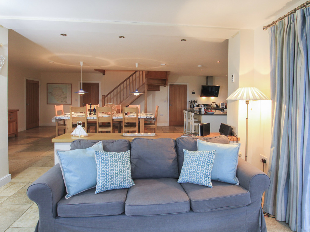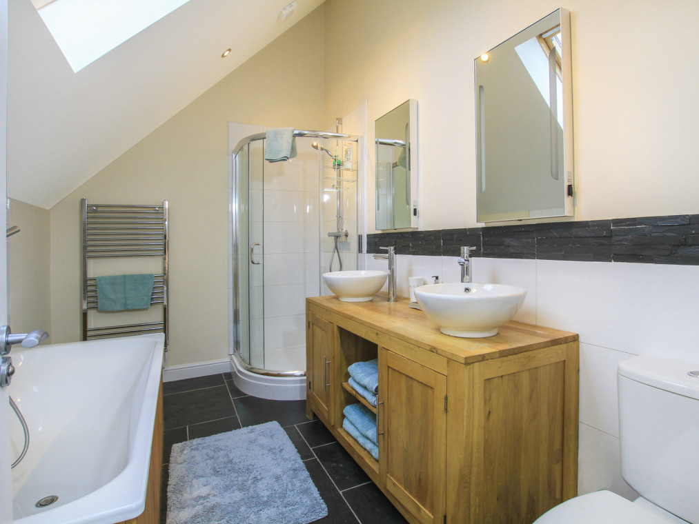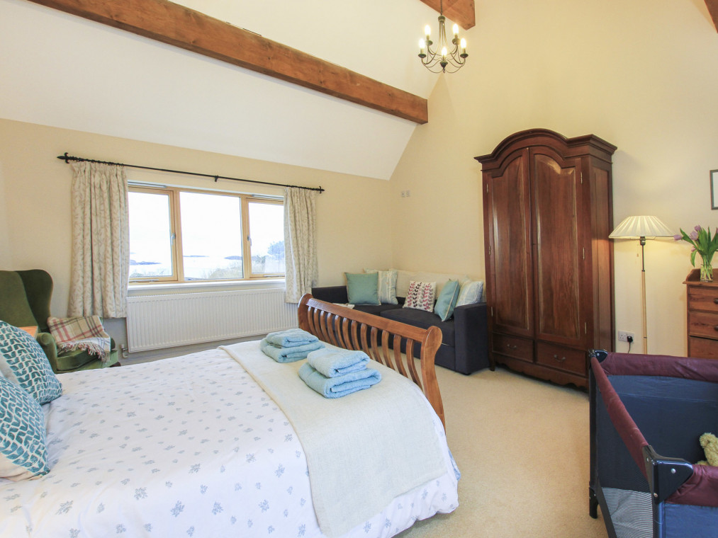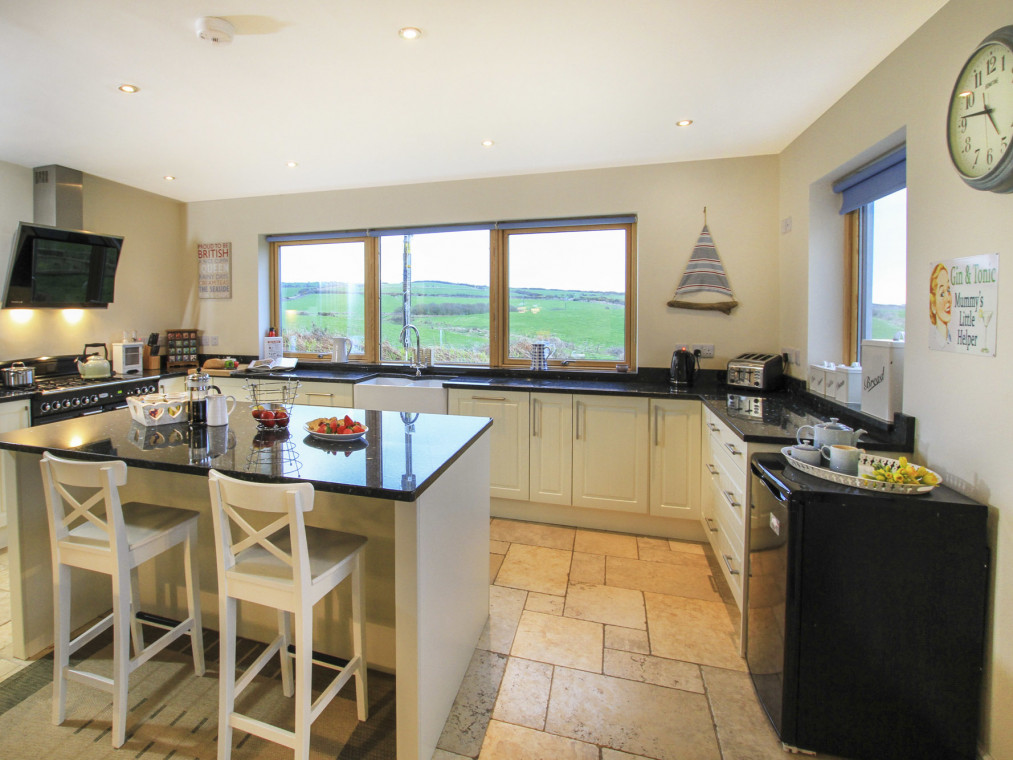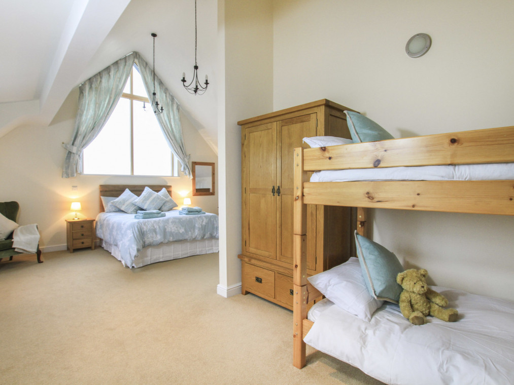 Ty Glan y Mor is a holiday house in a spectacular setting on the island of Anglesey. Inside the house is contemporary, welcoming and bright. Lovely, spacious garden with sandy beaches, walks and attractions nearby. You are sure to make happy memories of a family holiday in North Wales here. The sitting, kitchen and dining areas combine to create a lovely open plan space. The kitchen has all the mod cons including a range oven, fridge, dishwasher, wine cooler, microwave and toaster. The utility is where you’ll find a fridge freezer, washing machine and dryer. There is a large dining table and chairs to sit up to eight people. The stunning sun room has the most amazing picture windows that frame the sea views across the countryside with comfy sofas provided for you. There is a further sitting room with sofas and chairs, a wood burning stove for extra warmth in the winter, a TV and a DVD player. There is also a cosy seating space on the upstairs gallery with a chair, a rocker and a bean bag. A TV, Playstation 2 and games make this the ideal place for children to relax. On the ground floor is a shower room with shower, loo and wash hand basin. The bedrooms consist of a master with king size bed and ensuite with bath, shower, his and hers wash hand basins, loo and wash hand basin. There are also a set of child size bunks in here, so it can be used as a family bedroom A further double bedroom with king size bed also has an ensuite with shower, loo and wash hand basin. There is a further double bedroom and a twin room. The family bathroom has a bath, shower, loo and wash hand basin. The spacious outside space consists of a garden laid to lawn with patio areas and garden furniture. There’s a handy outside warm shower for washing off sandy toes! There is parking for up to three car. There’s also room for a boat if needed and there's a paddock should you wish to bring along your pony. Ty Glan y Mor is a fab family holiday house because you don’t have to leave if you want a relaxing haven! Watch the wildlife, ever changing sea views and sunsets without having to leave the comfort of the house. The coastal footpath is nearby, as are wonderful beaches and coves, activities, places to eat and drink and attractions. Four bedrooms: 2 x King size ensuite, 1 with child size bunks, 1 x double 1 x twin. King ensuite has bath, shower, two basins and WC. Double ensuite has shower, WC and basin. Ground floor shower, WC and basin. First floor bathroom with bath, shower, WC and basin. Open plan kitchen, dining sitting area with wood burning stove. Seating gallery over looking the living space. Amenities for Rental Central heating with wood burning stove Range cooker, dishwasher, fridge, freezer, washing machine, drier, wine cooler and microwave TV, DVD, WiFi, Playstation 2 Travel cot (no linen), highchair Bed linen and towels provided Large lawn and patio area with garden furniture Outdoor hot shower Off road parking for 3 cars, with room for trailer/ horse box Paddock available for horses Two dogs welcome at this house Village shop, pub and restaurant 1.7 miles NOTE WiFi and TV signal can be intermittent due to location.