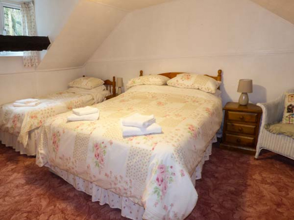 A pretty cottage at the entrance of the farm with a large enclosed garden wrapping around it, close to the babble of the brook. One family room and one twin bedroom plus a twin bedroom area on the large landing offer flexibility for families. There is also a family bathroom, kitchen and a spacious living area leading through to large dining area, perfect for a family looking to relax and enjoy each others company as well as the fabulous surrounding countryside. Note: This property is near to Refs. 932941, 932942 and 939007, together they sleep 21. Three bedrooms: 1 x twin, 1 x twin beds on large landing, 1 x family room with 1 double and 1 single. Bathroom with bath, shower over, basin and WC. Kitchen. Sitting room with dining area and electric fire. Amenities for Rental LPG central heating with electric heaters Electric oven and hob, microwave, fridge/freezer, washing machine, tumble dryer, TV with Freeview, DVD, selection of books and games Fuel and power inc. in rent Bed linen and towels inc. in rent Travel cot, highchair and stairgate Off road parking for 2 cars Enclosed lawned garden with picnic bench Two well-behaved pets welcome Sorry, no smoking Shop 4 miles, pub 1.6 miles Note: Sloping ceilings on the first floor Note: WiFi available in the farmhouse annexe.