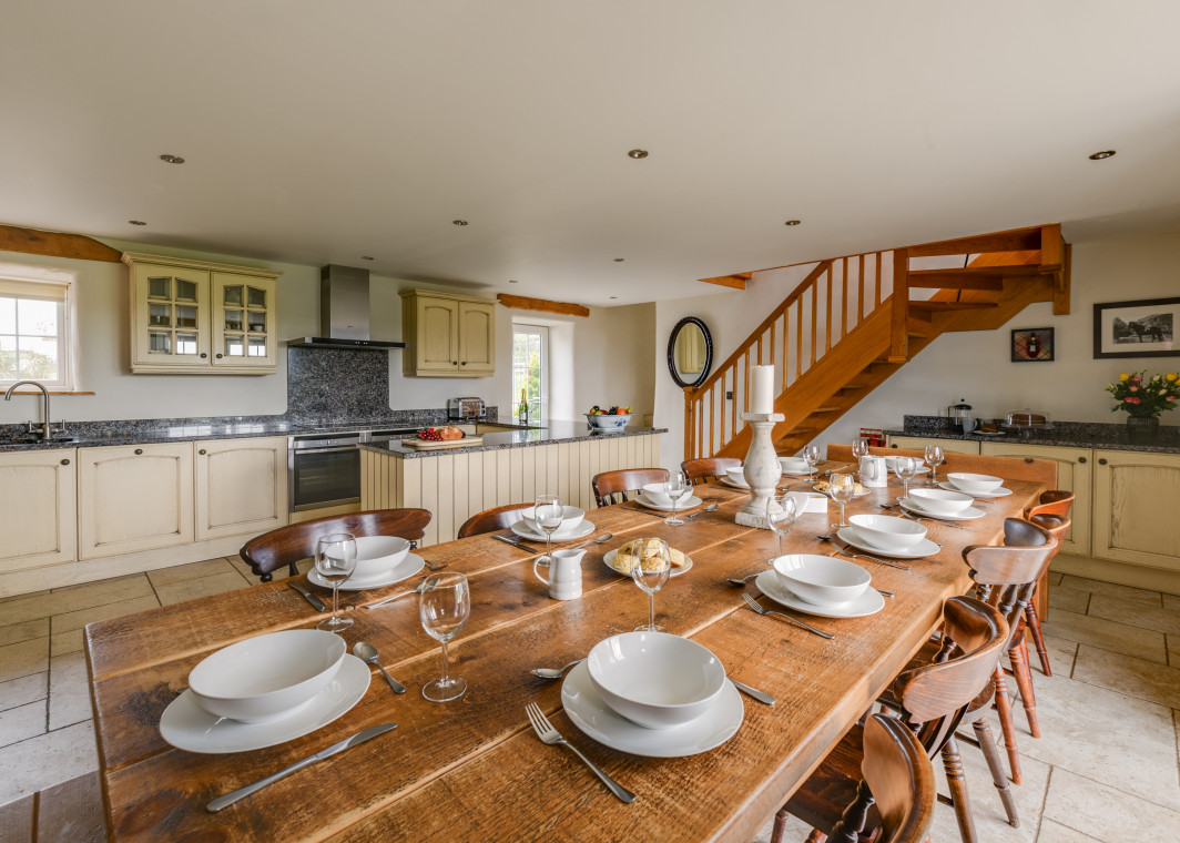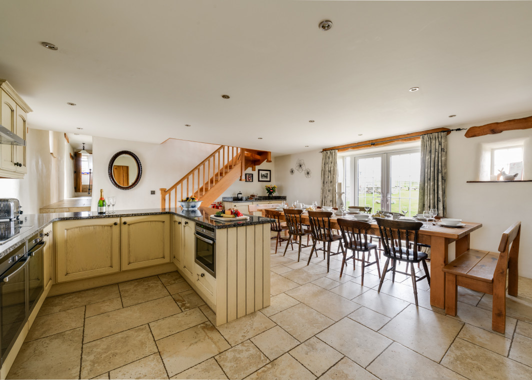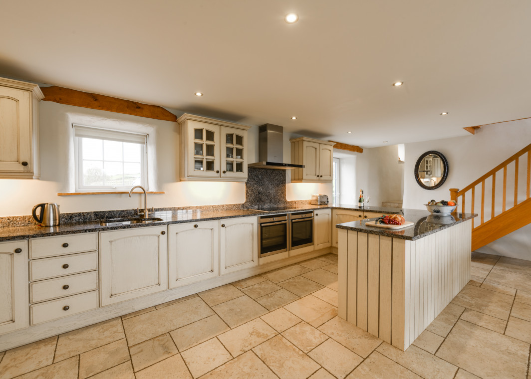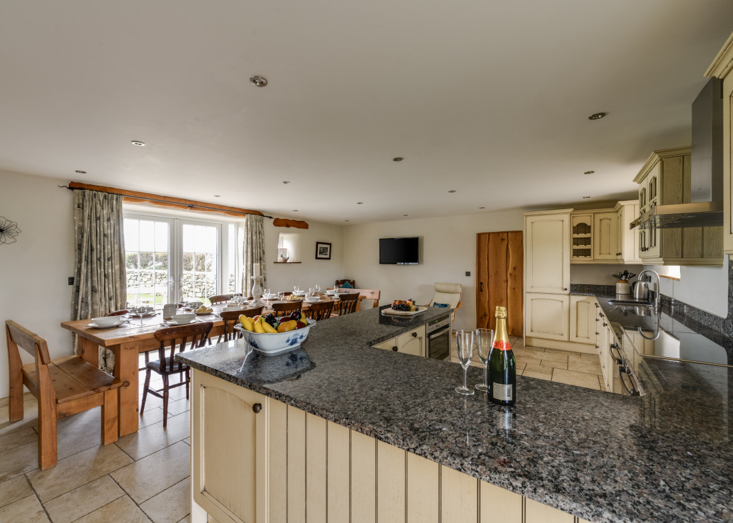 - Kitchen and utilities – both kitchens are fully fitted, with two large single ovens and large induction hob dishwasher, microwave, and built in fridge. Utility area includes washing machine and tumble dryer, and outside utility room contains freezer.