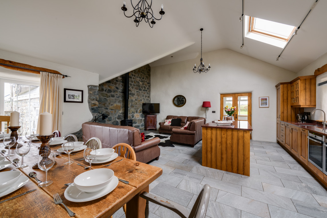 If you're after a beautiful five star holiday cottage for that special get together with friends and family, then look no further. This stunning and spacious holiday cottage with views has all the indulgent extras and special touches that will make your time here all the more blissful. Accommodating up to 24 guests, it has a combination of large rooms for gatherings and smaller private dens for peace and quiet. With a sauna, an outdoor play area, and even a football field, all ages will be charmed by this delectable property. Situated within walking distance of village pubs and amenities, the Llŷn Peninsula location is spectacular, close to many beaches, small villages, and attractions. Make memories with your friends and family in this exquisite North Wales property.