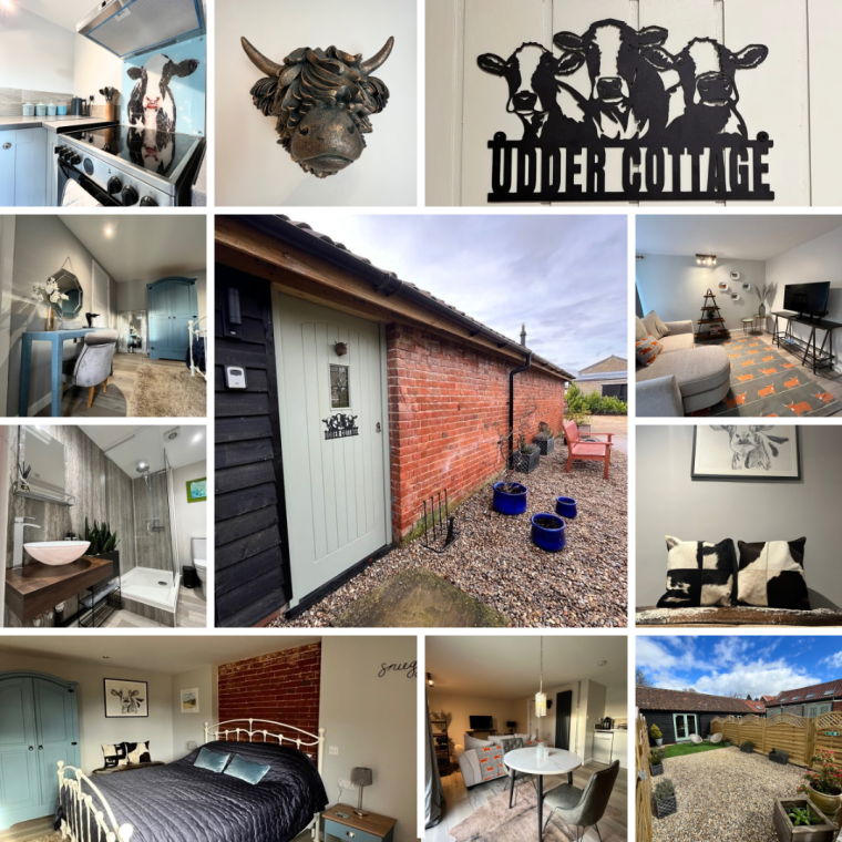Read MoreOur one bedroom holiday cottage Udder Cottage is based in Fressingfield, Suffolk. With a super comfy super king-sized beds, waterfall shower and open plan kitchen diner, we have everything you will need for your doggy holiday, including Ruff and Tumble throws for the sofa, water bowls, towels and more! The kitchen is fully equipped with all the essentials, including a Tassimo coffee machine (& pods). Each cottage has its own semi-private enclosed garden (not suitable for dog-reactive dogs due to shared fencing with neighbouring cottage) with garden furniture for you to sit out in and enjoy the warm weather in the summer months. We also have a parasol for you to use so your doggies don’t get too hot! We have an on-site washing room (washing machine and drying racks), bike/ fishing gear storage area with dog shower (ready for September 2024) On-site parking for 1 car per cottage. We allow 2 dogs per cottage, although please bear in mind the cottage will not be suitable for extra large breeds! Both cottages can be booked together (Udder Cottage and Milk Churn), perfect for family or friends wanting their own space on holiday