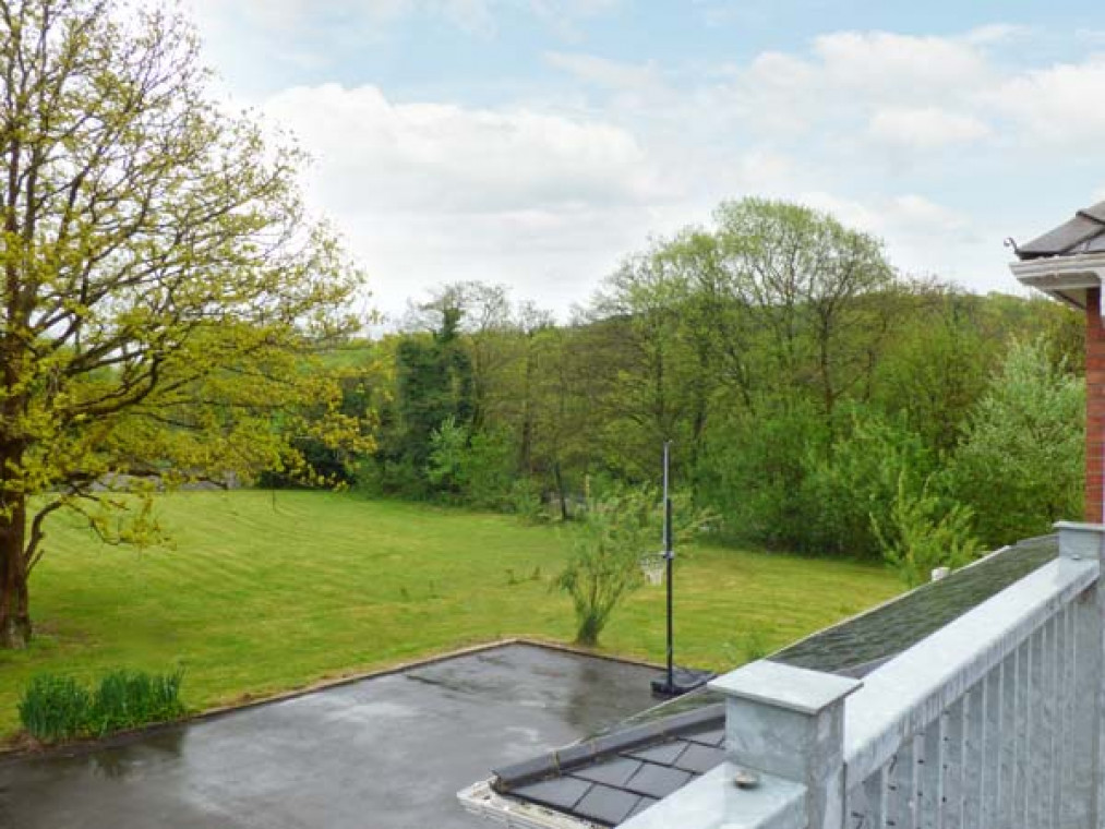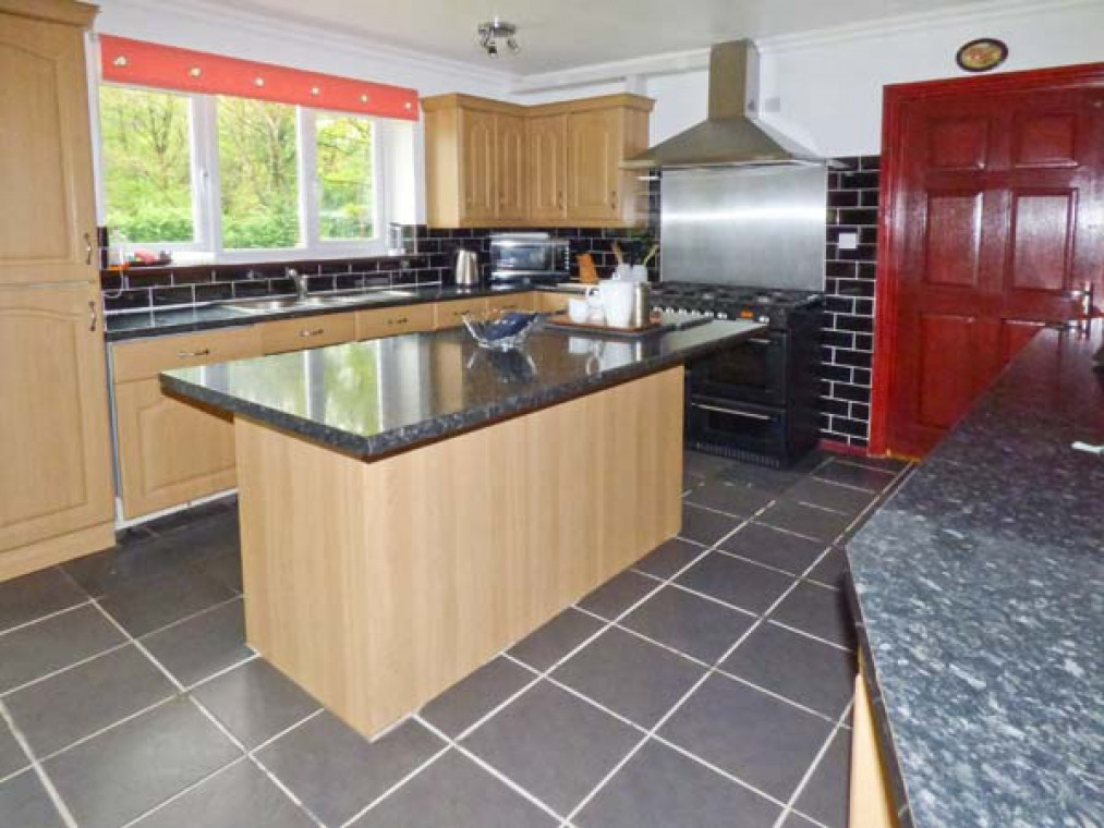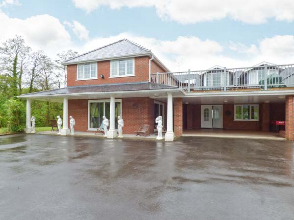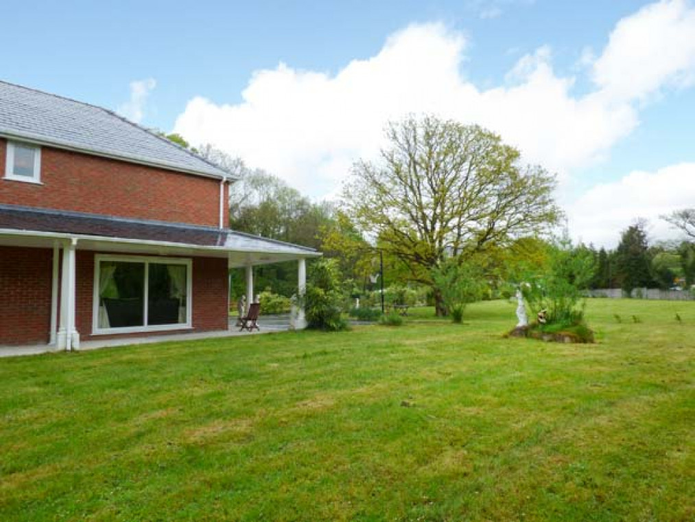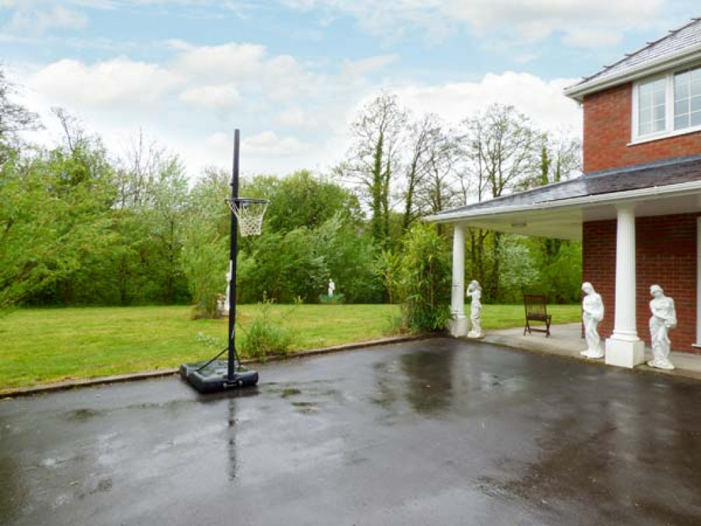 A modern, detached property nestled in a small river valley, near the residential village of Glanaman, just nine miles from Llandeilo. This striking holiday home is the perfect base for large families and groups of friends to relax and explore the surrounding countryside. Set over two floors, there are six large bedrooms, including one family room downstairs with a shower room adjacent, and five bedrooms upstairs with their own en-suite. On the ground floor is a large, well-equipped kitchen overlooking the spacious lawn, with an island unit, from which you can access a spacious dining room and enjoy home-cooked meals together. The dining room leads through into the ground floor family bedroom and on this floor there is also a large spacious sitting room with a projector TV, the perfect place to sit and catch up with friends and the family. Outside, you can sit on the upstairs patio and enjoy a barbecue, basking in the evening sun, or sit under the veranda and relax as you listen to the babble of the River Amman that borders the gardens. A short drive away you can explore Llanedilo, a bustling market town on the River Towy, nestled in the Carmarthenshire countryside, with boutique-style shopping. The area is perfectly placed for exploring South Wales’ diverse countryside; why not visit the National Showcaves of Wales, or explore the many waterfall walks in the National Park? Approximately an hour’s drive will take you to the beautiful sandy beaches of South Wales, including the mysterious Worms Head of Rhossili Bay. Six bedrooms with TV: 2 x four poster king-size double with en-suite shower, basin and WC, 1 x twin with en-suite Jacuzzi bath, hand-held shower, basin, bidet and WC, 1 x twin with en-suite shower, basin and WC, 1 x family room with 3 singles and en-suite Jacuzzi bath, hand-held shower, basin, bidet and WC, 1 x ground floor family room with 1 double and 1 single day bed. Ground floor shower room with shower, basin and WC. Kitchen with breakfast bar. Dining room. Sitting room. Amenities for Rental Gas central heating Gas range oven and hob, microwave, fridge, fridge/freezer, washing machine, tumble dryer, dishwasher, 6 x TVs with Freeview plus projector TV with Sky, DVD, WiFi Fuel and power inc. in rent Bed linen and towels inc. in rent Travel cot and highchair on request Ample off road parking Lawned garden and patio with veranda and furniture Upstairs balcony with furniture and BBQ Three well-behaved dogs welcome Sorry, no smoking Shop and pub 1 mile Note: Small unfenced river bordering property, care should be taken and children and pets supervised Note: Check-in 4pm.