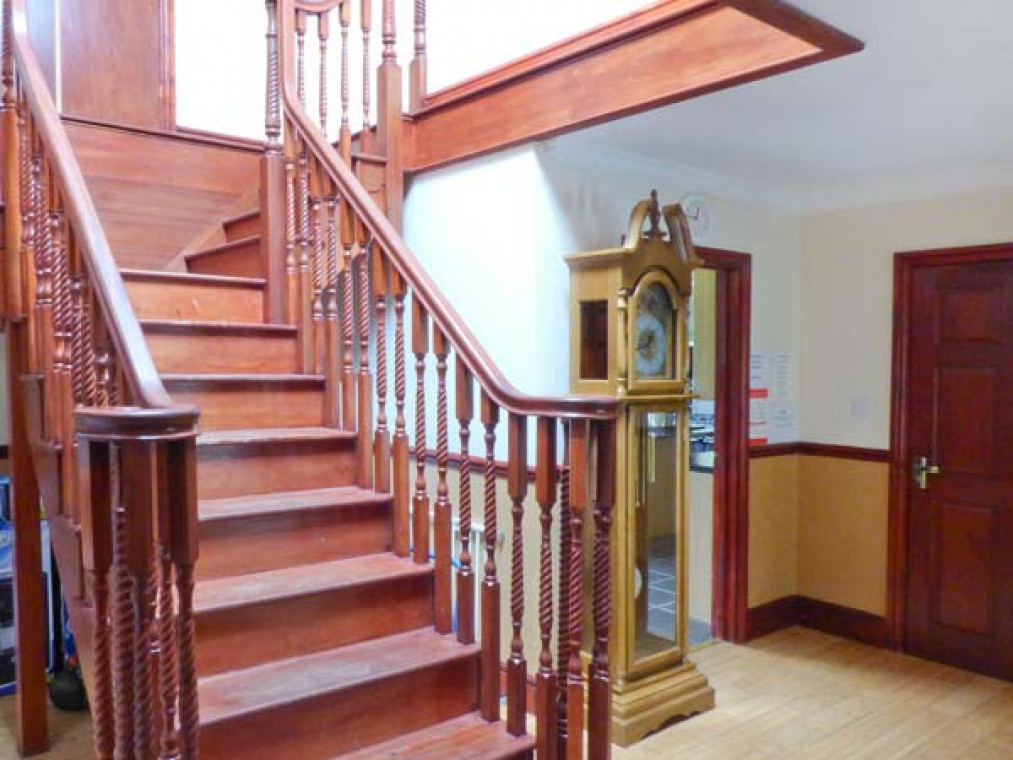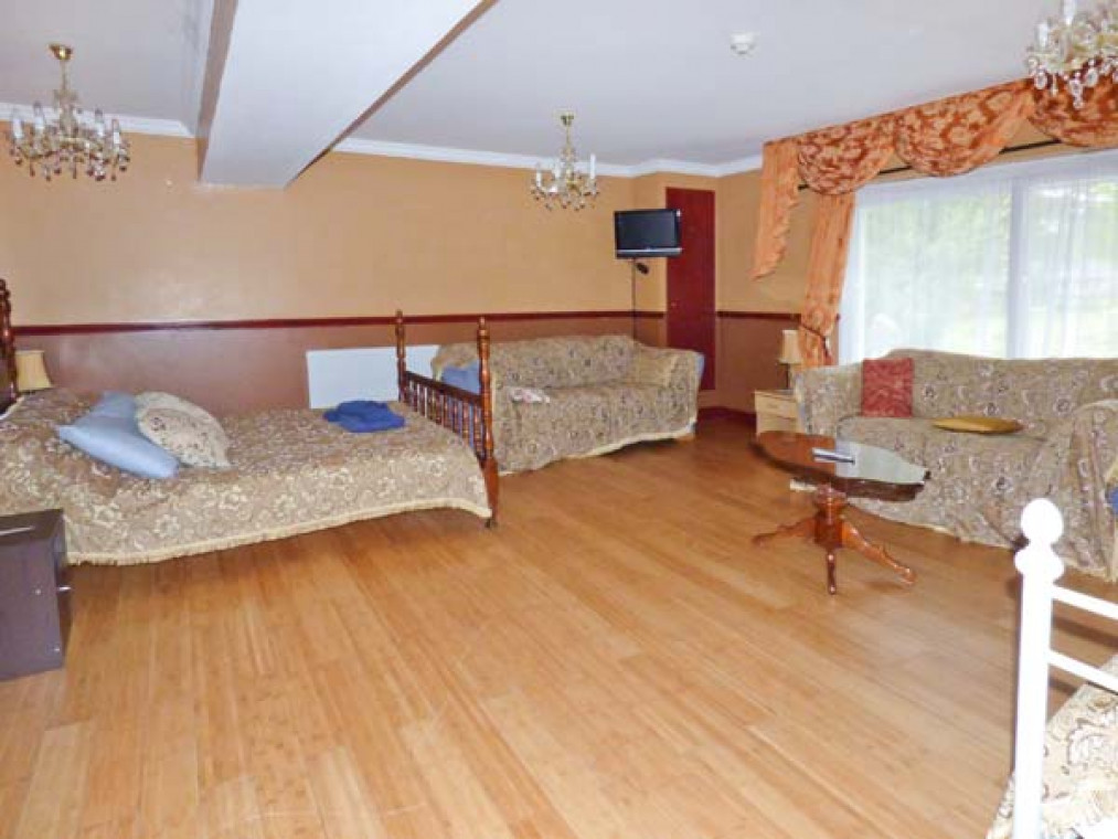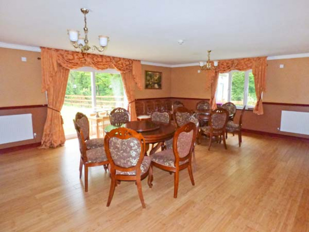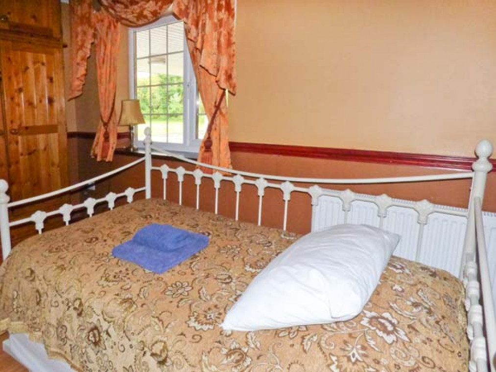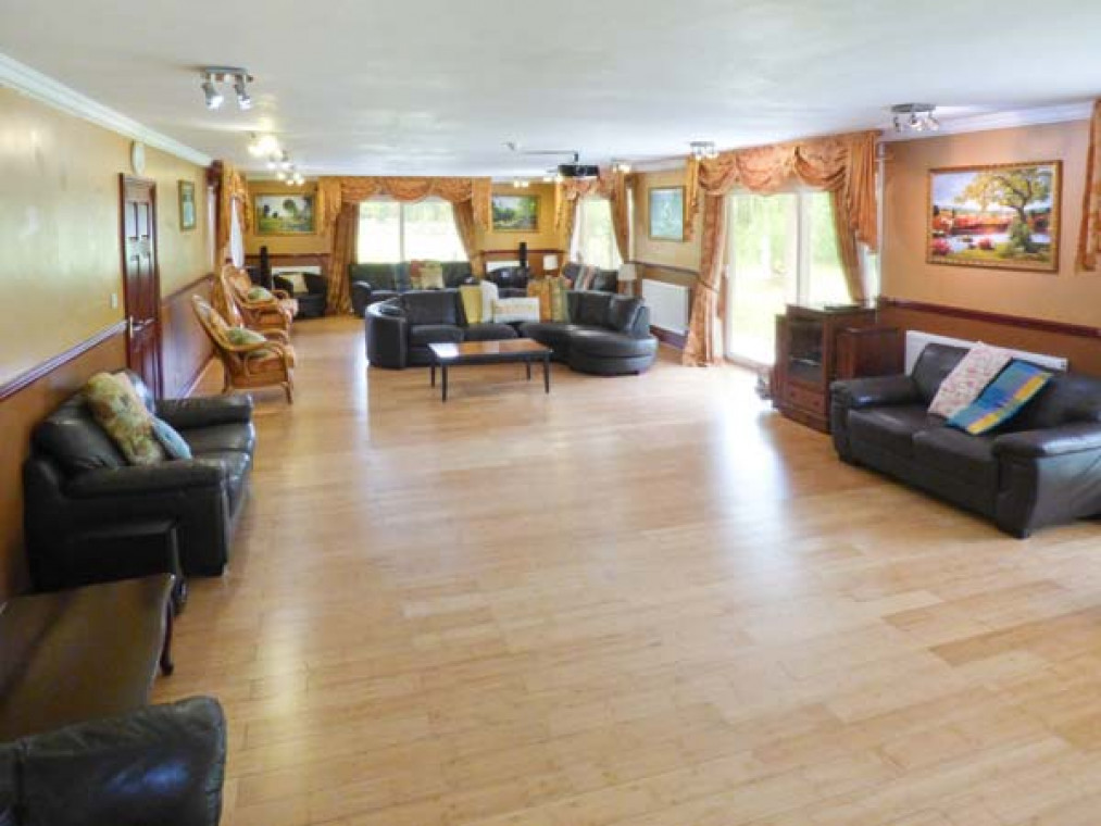 A modern, detached property nestled in a small river valley, near the residential village of Glanaman, just nine miles from Llandeilo. This striking holiday home is the perfect base for large families and groups of friends to relax and explore the surrounding countryside. Set over two floors, there are six large bedrooms, including one family room downstairs with a shower room adjacent, and five bedrooms upstairs with their own en-suite. On the ground floor is a large, well-equipped kitchen overlooking the spacious lawn, with an island unit, from which you can access a spacious dining room and enjoy home-cooked meals together. The dining room leads through into the ground floor family bedroom and on this floor there is also a large spacious sitting room with a projector TV, the perfect place to sit and catch up with friends and the family. Outside, you can sit on the upstairs patio and enjoy a barbecue, basking in the evening sun, or sit under the veranda and relax as you listen to the babble of the River Amman that borders the gardens. A short drive away you can explore Llanedilo, a bustling market town on the River Towy, nestled in the Carmarthenshire countryside, with boutique-style shopping. The area is perfectly placed for exploring South Wales’ diverse countryside; why not visit the National Showcaves of Wales, or explore the many waterfall walks in the National Park? Approximately an hour’s drive will take you to the beautiful sandy beaches of South Wales, including the mysterious Worms Head of Rhossili Bay. Six bedrooms with TV: 2 x four poster king-size double with en-suite shower, basin and WC, 1 x twin with en-suite Jacuzzi bath, hand-held shower, basin, bidet and WC, 1 x twin with en-suite shower, basin and WC, 1 x family room with 3 singles and en-suite Jacuzzi bath, hand-held shower, basin, bidet and WC, 1 x ground floor family room with 1 double and 1 single day bed. Ground floor shower room with shower, basin and WC. Kitchen with breakfast bar. Dining room. Sitting room. Amenities for Rental Gas central heating Gas range oven and hob, microwave, fridge, fridge/freezer, washing machine, tumble dryer, dishwasher, 6 x TVs with Freeview plus projector TV with Sky, DVD, WiFi Fuel and power inc. in rent Bed linen and towels inc. in rent Travel cot and highchair on request Ample off road parking Lawned garden and patio with veranda and furniture Upstairs balcony with furniture and BBQ Three well-behaved dogs welcome Sorry, no smoking Shop and pub 1 mile Note: Small unfenced river bordering property, care should be taken and children and pets supervised Note: Check-in 4pm.