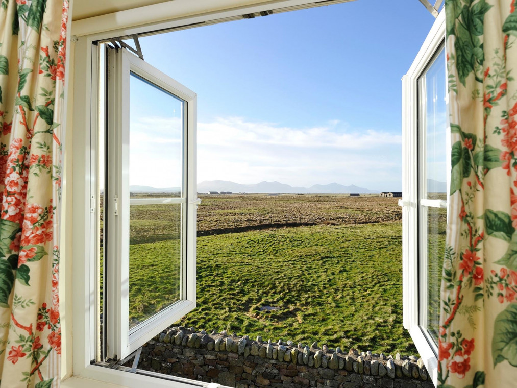 Warren Farmhouse is located in a very secluded spot close to the historic town of Caernarfon. It has a very relaxing feeling when you get inside with views across the Snowdonia mountain range and out to sea. When you go outside at night there is next to no light pollution apart from the twinkling villages in Snowdonia. This makes for fantastic stargazing in the dark sky region of Snowdonia. If this isn’t enough you are a ten minute walk to the beach. The kitchen is well equipped with electric hob, double oven, two dishwashers, larder fridge, freezer and microwave. There is also a small breakfast table. The dining room is situated in the hall, with a lovely farmhouse table, Welsh dresser and open fire. The sitting room has a TV and is a snug for the cosy winter nights with open fireplace. There is a games room with Wendy house, ping pong table, flat screen TV with DVD player. On top of this there is a IPod docking station, CD player and plenty of toys to play with. The garden room is fabulous with pinks and greens which give it a very light and fresh feel to the room. The views are spectacular and you can open up the doors to the little courtyard in the summer months. There are four rooms all with views of mountains or sea. There are two double rooms with king size beds, one being an ensuite and there are two twin rooms. Three bathrooms including a bathroom with bath, loo, wash hand basin and heated towel rail. A shower room with wash hand basin and loo. The ensuite is a wet room with shower, wash hand basin and loo. There is a cloakroom with loo and wash hand basin and the utility room has a washer/dryer, separate sink and a large fridge/freezer. You have the extra treat of a private path which takes you down to the beach. Once you are on the path it’s around a 10 minute stroll down to either a morning dip or wander along the beach! It starts around 200 yds from the holiday home. You are in a fabulous location to explore North Wales. The historic town of Caernarfon with its impressive castle. The Wales coastal path. Snowdonia attractions such as The Welsh highland Railway and Zip World. So if you feel you need to take yourself away from the delightful Warren Farmhouse there is plenty on offer. Four Bedrooms: 1 x Ensuite Superking 1 x Superking 2 x Twin. Bathroom with WC basin and bath. Bathroom with Shower, WC and basin. Ensuite wetroom with Shower, WC and Basin. Kitchen with small breakfast table.Sitting Room with open fire. Dining Room. Games Room with Ping pong table. Utlitly Room. Garden Room. Amenities for Rental Central Heating and open fires Electric hob with double oven, two dishwashers, larder fridge, freezer, microwave, washing machine, tumble dryer Wifi, ping pong table, TV, DVD player, Ipod docking station, garden furniture, path down to beach Cot, highchair Initial Supply of fuel for fire Bed linen and towels provided Up to 3 well behaved female dogs are welcome but PLEASE BE AWARE OF SHEEP IN SURROUNDING FIELDS and keep dogs on a lead while outside.