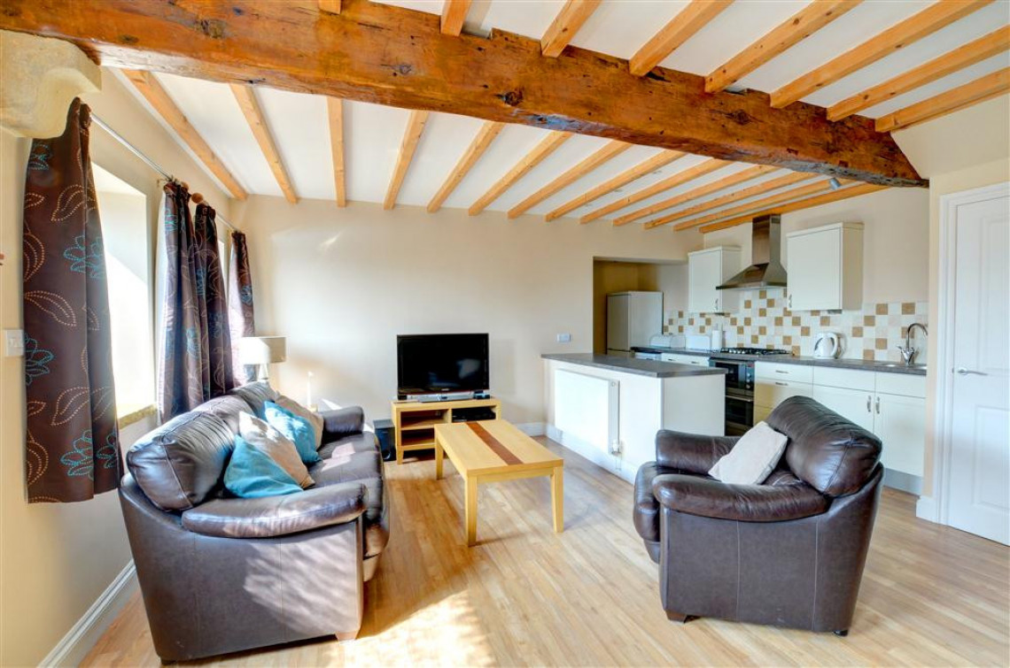 - Rooms: 2 bedrooms, shower room, open plan lounge with kitchen and dining areas, kitchen, shared laundry room