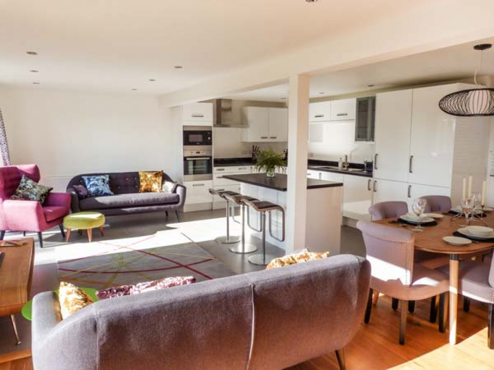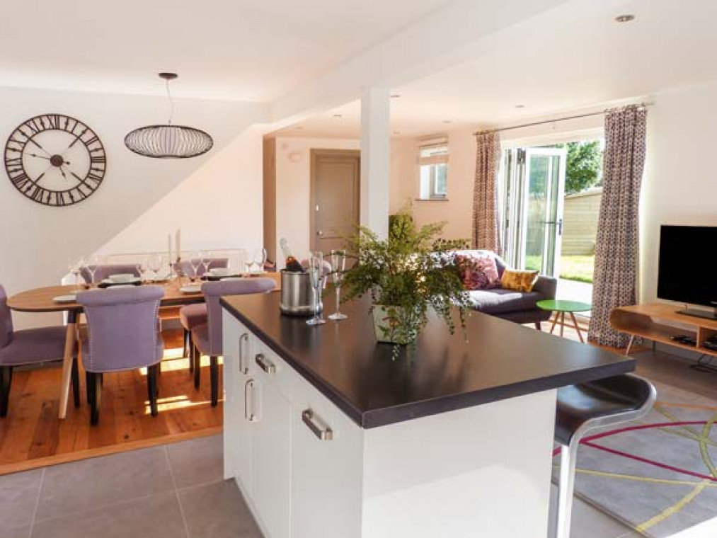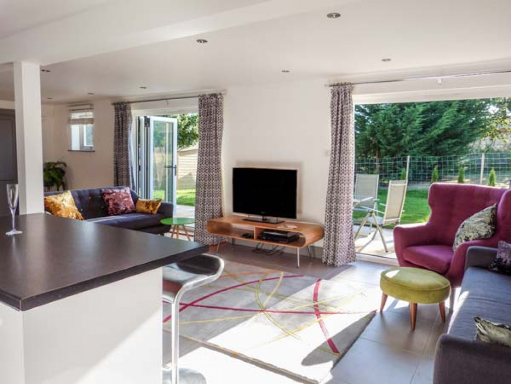 Rye 2 miles. Once part of the owners home this large, light and airy wing has been lovingly transformed into a beautiful holiday home, welcoming couples and families who wish to stay somewhere rural, yet close to Rye and within a short drive of Camber Sands. If this beautiful property seems a little familiar then you may recognise it as once being the former home of Spike Milligan, the comedian, writer and actor, who lived in the property and is now buried at Winchelsea, just a few miles away. Both delightful bedrooms have lovely views. The king-size master bedroom has outside access with steps leading down into the garden, so you can enjoy the sounds of a dawn chorus from the comfort of your bedroom with the French doors ajar, or you can step down into the garden without waking the rest of your fellow guests. The beautiful dog secure private garden/ terrace with BBQ is a fantastic and secure area for your dogs to play, It also features a fabulous hot tub, where you can enjoy the view to the sea. A family bathroom completes this first floor, which is just the place for someone who likes to relax in a deep, warm bubble bath, while the ground floor wet room is perfect for those who like to feel the jets of water, washing away the days activities before settling down to relax. The well-equipped kitchen with central island and breakfast bar, is ideal for grabbing a quick breakfast before heading out for the day, while the dining area is perfect for enjoying a relaxed home-cooked meal. On a summers evening, why not open the patio doors leading out to the garden and dine alfresco? When its time to retire inside, snuggle down on one of the comfy sofas and for those guests using the sofa bed, a handy screen has been provided for your privacy. The beautiful medieval town of Rye with its cobbled lanes and quaint shops, tiny tea rooms and local inns serving delicious meals made from local produce, and of course being so close to the sea there are plenty of fish and chips shops. Fishing trips can be enjoyed from the harbour and on Thursdays the town buzzes with its famous market, where you can buy everything from homemade bread to freshly-grown vegetables. Just a short distance away is Camber Sands where you can laze and relax on golden beaches, and for those with youngsters or are simply young at heart, let your creative juices loose on those sandcastles! Alternatively, for somewhere more lively and with lots of music and nightlife, take a trip into Hastings further along the coast. Rye is the perfect spot for a holiday for all at any time of the year. Two bedrooms with Sky TV: 1 x king-size double with outside access, 1 x twin. Bathroom with bath, shower over, basin and WC. Ground floor wet room with shower, basin and WC. Open plan living area with kitchen, dining area and two sitting areas (one with double sofa bed). Amenities for Rental Oil central heating Electric oven and hob, microwave, coffee machine, fridge/freezer, washing machine, dishwasher, 3 x TVs with basic Sky, WiFi, selection of books and games Fuel and power inc. in rent Bed linen and towels inc. in rent Hot Tub Off road parking for 2 cars Dog secure private garden/ terrace with BBQ Two well-behaved dogs welcome Sorry, no smoking Shop 2 miles, pub 1 mile Note: Due to the waste unit at the cottage, bleach and antibacterial products must not be used, all products for cleaning are provided by the owner Note: No unacceptable products to be disposed of in WC Note: Due to the outside access from the master bedroom with steps down to the garden, children must be supervised at all times.