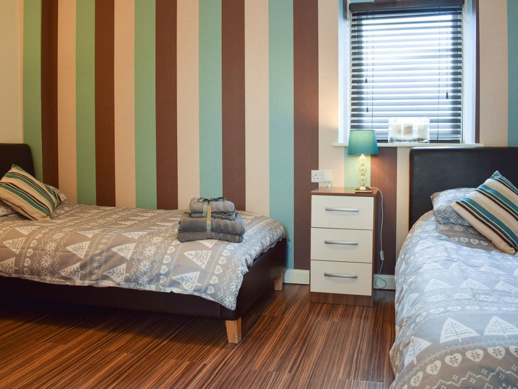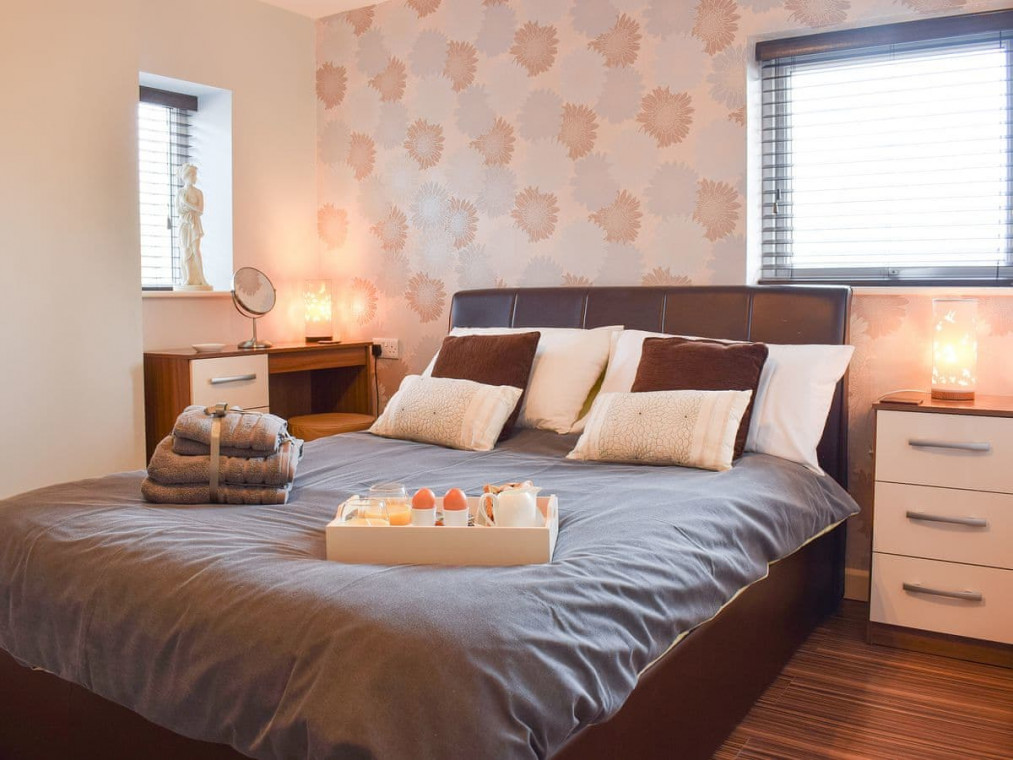 On the ground floor there are two bedrooms and the shower room, each with under floor heating. The bedrooms, a double and a twin, have more than adequate storage, with a modern but homely feel, Beds are made up ready for your arrival, towels are also included. The double bedroom has a 32 inch HD tv with built in DVD using freesat for a large selection of channels. The shower room has a walk in shower, WC and towel heater. All with modern tasteful decor.