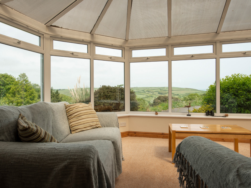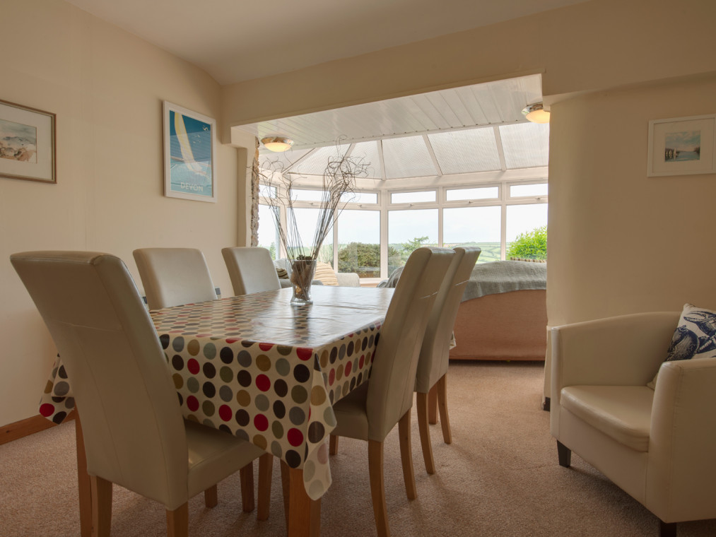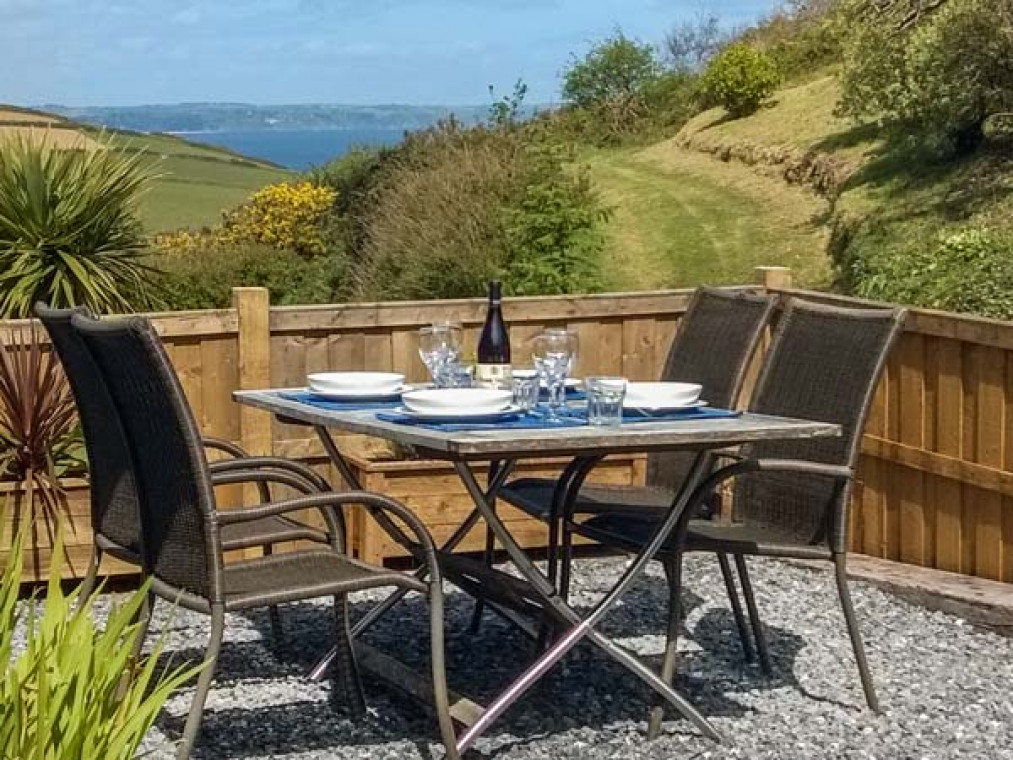 Read MoreAn end of terrace cottage situated beside a non-working farm near Hallsands and Kingsbridge, with sea views from the conservatory and master bedroom and countryside views to the front and rear. With plenty of space, this cottage is a great for a family holiday. It has three bedrooms, a shower room upstairs and a separate WC downstairs, along with a well-equipped kitchen with a dining area, and the sitting room with a new woodburning stove has been furnished in a traditional style. The conservatory has a second dining area and a seating area with views across Start Bay. There is also a wood stove to keep you warm in the evening. (NB the conservatory is a seasonal room as is the nature of conservatories) On the first floor, the landing leads outside to an enclosed gated seating area which enjoys views across the countryside, and there are woodland walks around the gardens. Two bedrooms one with a king sized bed with views across Start Bay and a second twin room. Wardrobes in both rooms. There are extensive woodlands and gardens to explore in all about 6 acres. This cottage offers direct access to a footpath that leads to the South West Coast Path and to the beach at North Hallsands.. Note this property is next to Jasmine Cottage and Rose Cottage and together they sleep 14. Three bedrooms: 1 x king-size double, 1 x twin and 1 x bunk room, please note these are small bunks. First floor shower room with walk-in shower, basin and W.C. Additional ground floor WC with basin. Kitchen with dining area, second dining area in adjoining conservatory with wood burning stove, separate sitting room with wood burning stove. Electric storage heating and air source central heating with woodburning stove Electric oven and hob, microwave, fridge/freezer, washing machine, TV with Freeview, DVD, iPod dock, CD/DAB radio, WiFi, selection of books and games Fuel and power included and first basket of logs . Bed linen inc. in rent. Charge for towels. Travel cot (please bring own bedding) and highchair, stair gate available Off road parking for 2 cars Own enclosed gated seating area with furniture and place for BBQ Two well-behaved dogs welcome, to be kept out of bedrooms. (Sorry no puppies) Sorry, no smoking Property is 0.5 miles from beach via footpath. EV charging available