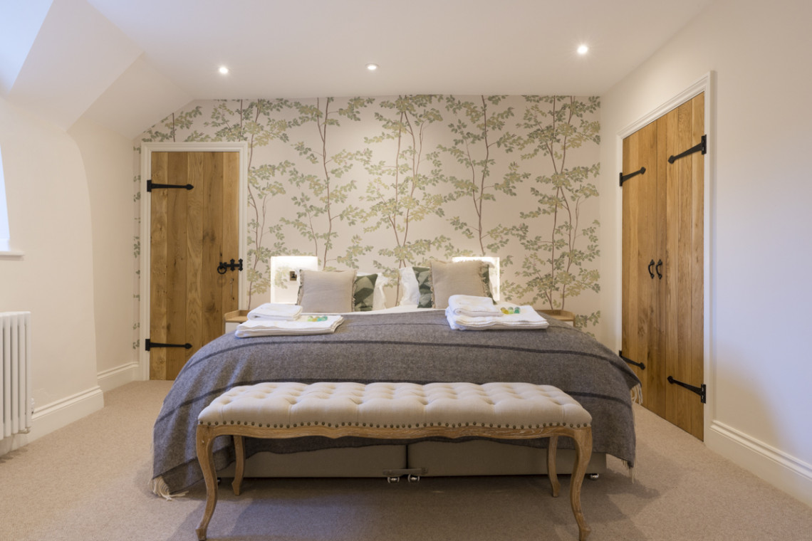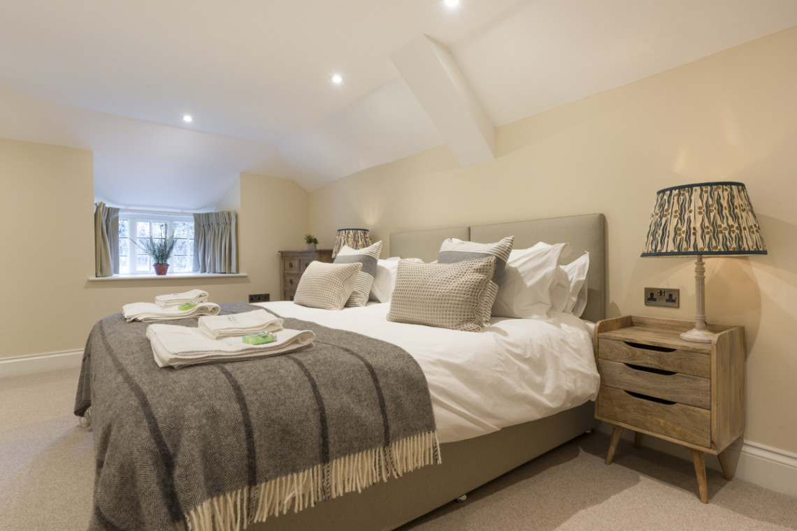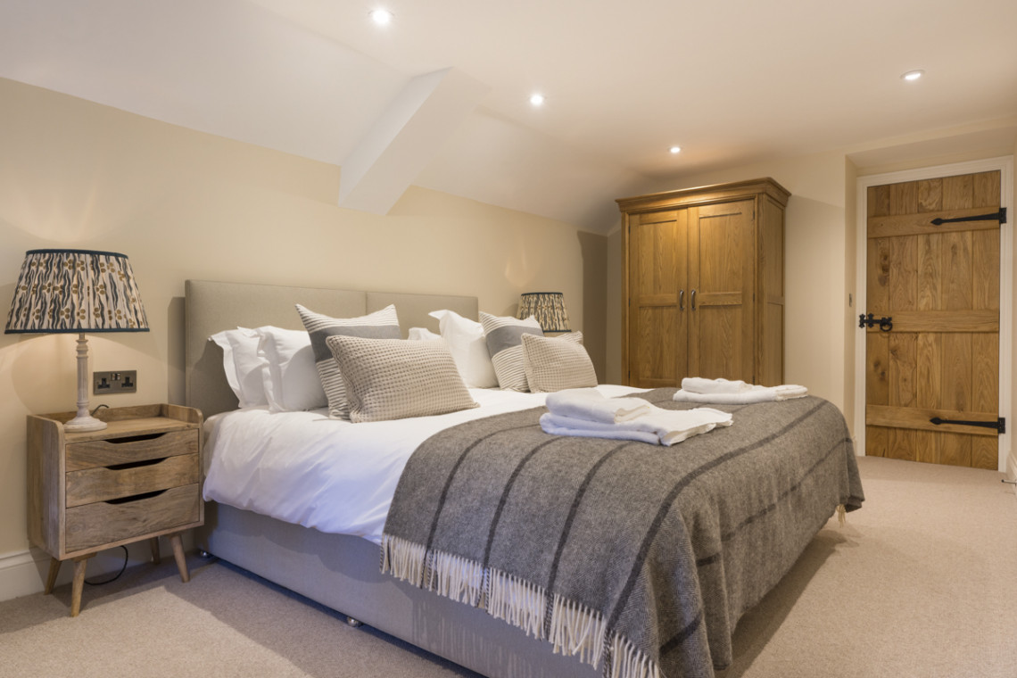 On the ground floor is the warm and welcoming living space which comprises of an open-plan kitchen and dining area, a cosy lounge with wood-burning stove as well as the first of the bedrooms, a super-king double room, which can be set up with twin beds on request, and an en-suite wet room. Upstairs, on the first floor are a further two bedrooms, the first, a super-king bedroom, that can also be configured as a twin, with an en-suite shower room. The second, a superking double room with freestanding nickel bath and walk-in shower, provides access to the fourth and final bedroom, a twin room located on the second floor, together these rooms are ideally suited to a family with young children.