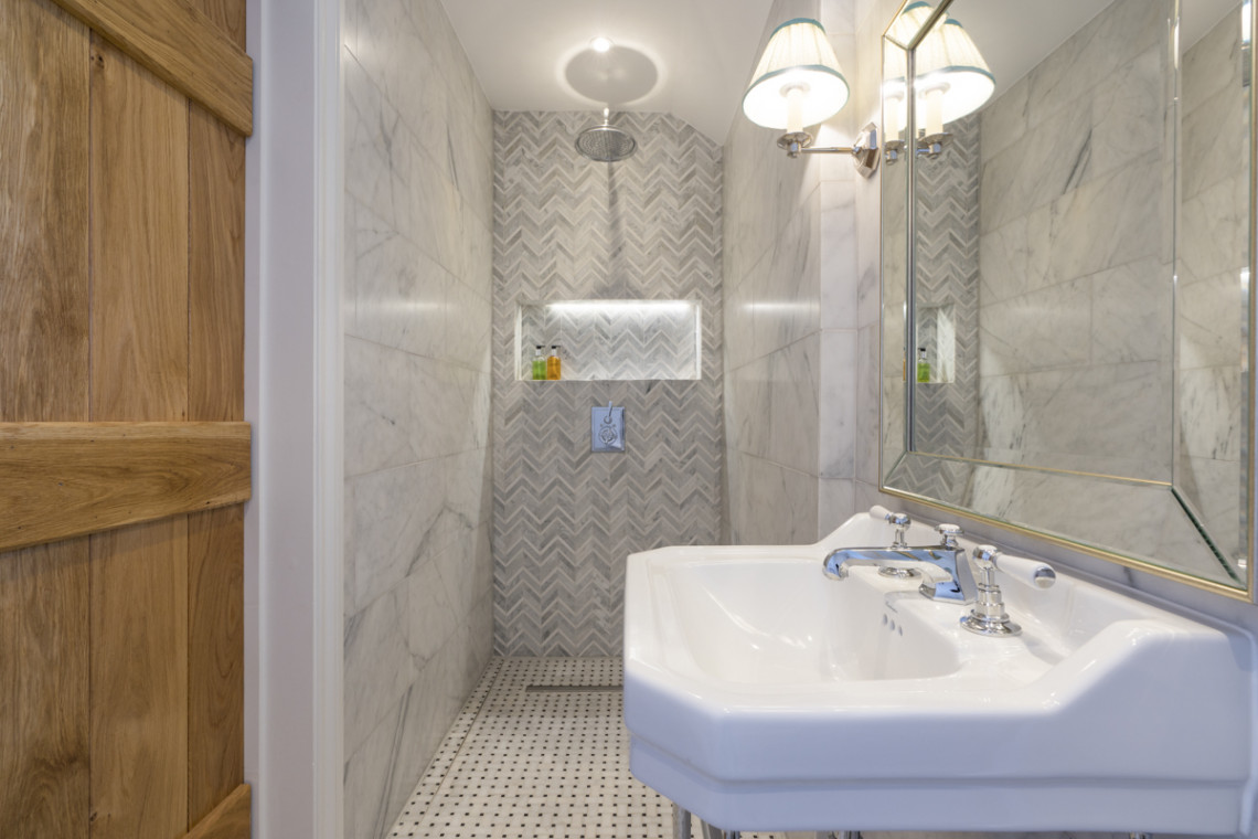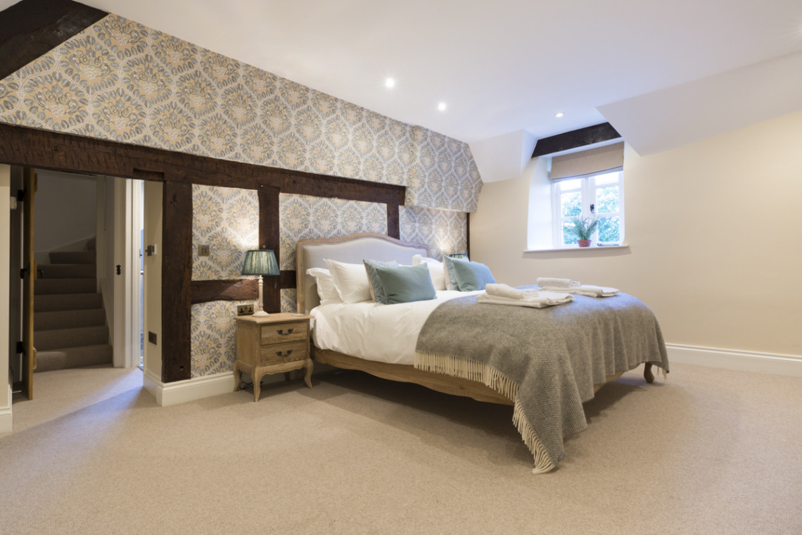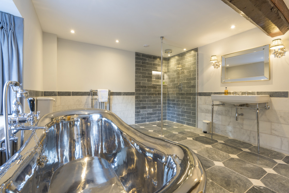 - Bedroom with superking bed and en-suite bathroom with freestanding nickel bath and walk-in shower Second Floor