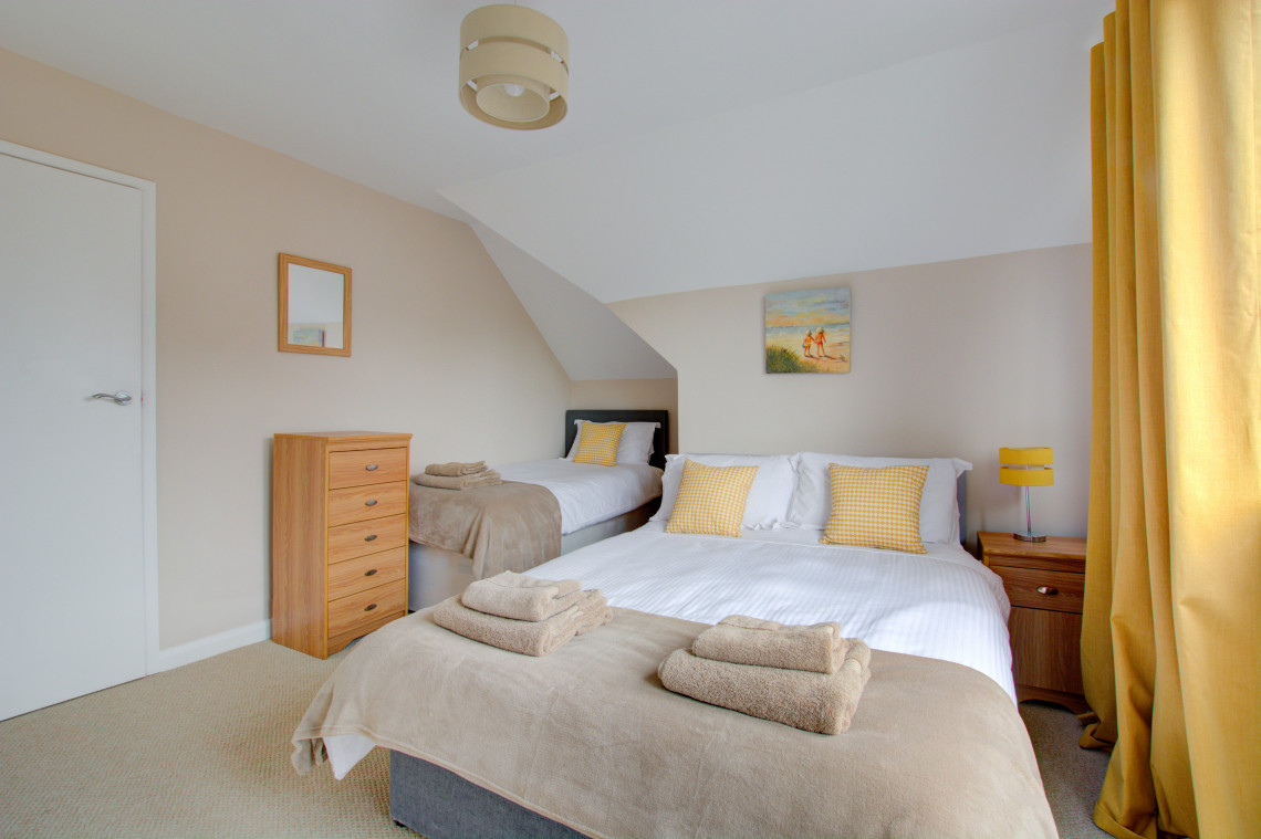 - Beds: 2 Super King beds 1 with En-suite, 1 Double & 1 Single 1 bed, 1 Twin bed