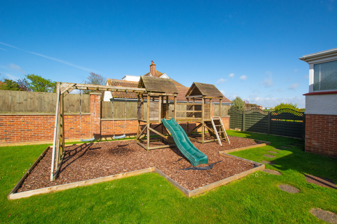 - Outdoors: Fully enclosed garden, decked veranda and childrens' play area with climbing frame, slide and swing, garden furniture