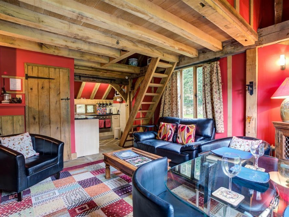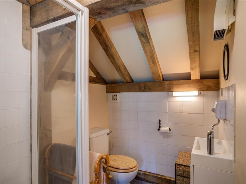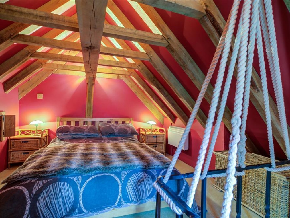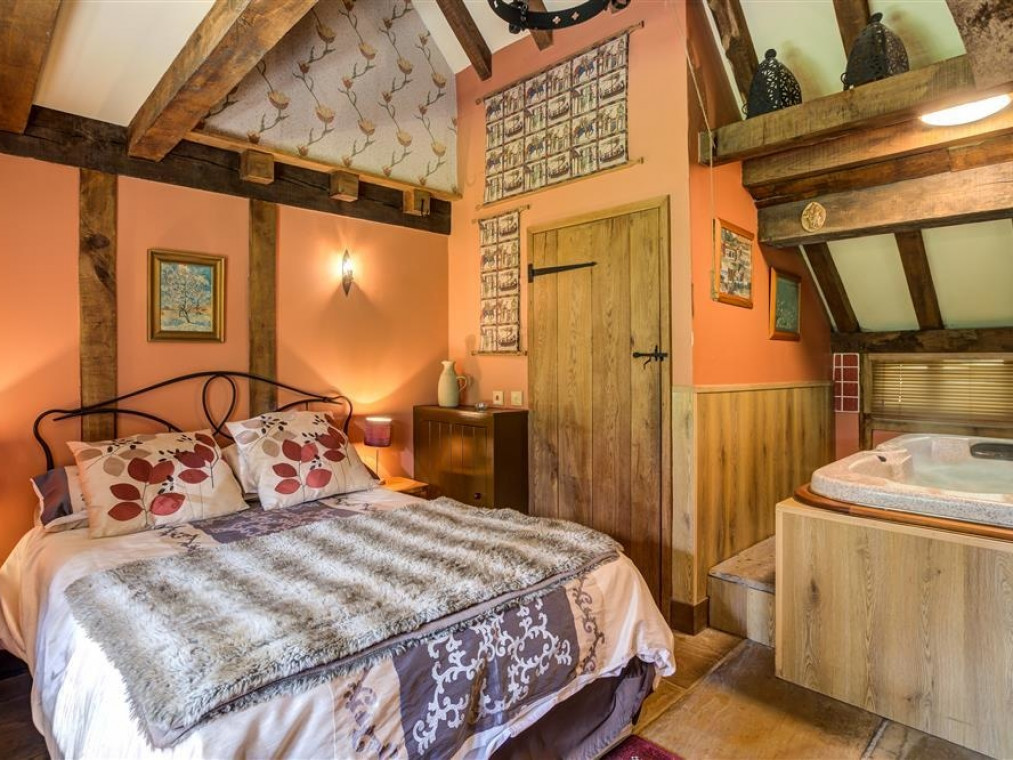 Two bedrooms: 1 x double (4ft 6), hot tub and Ensuite Shower Room/WC, 1 x double (4ft 6). Kitchen Open plan living room with dining area and sofa bed. Shower room, basin and WC. Amenities for Rental Central heating Oven, microwave, fridge, TV with Freeview, DVD player, Air-conditioning unit. Electricity pay as you go meter. Bed linen and towels inc in rent Small, stone paved area at the cottage entrance, access to the two acres of grounds surrounding the cottages and church One well behaved dog welcome. Sorry, no smoking. Short Breaks available all year round. Note: Electricity on £1 /£2 coin-in-slot meter. Note: Unsuitable for children under seven - steep, open tread stairs Note: The hot tub is in the first bedroom.