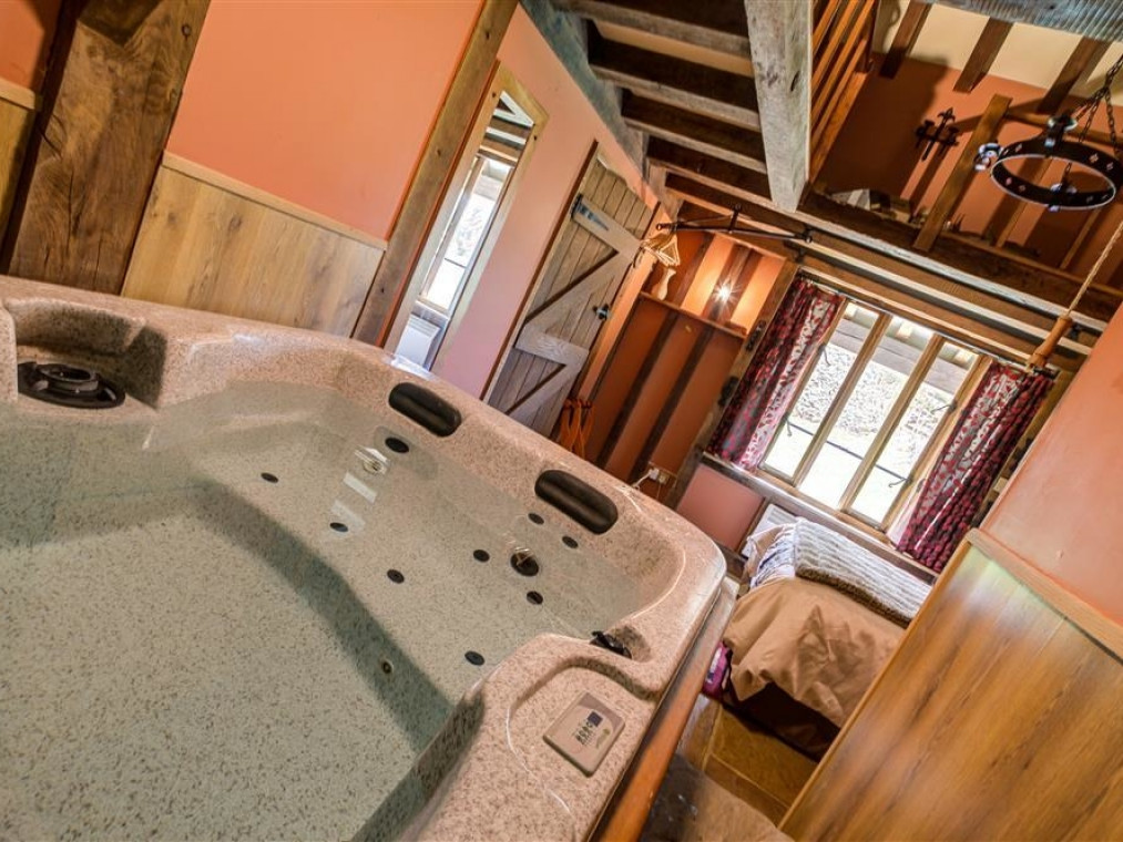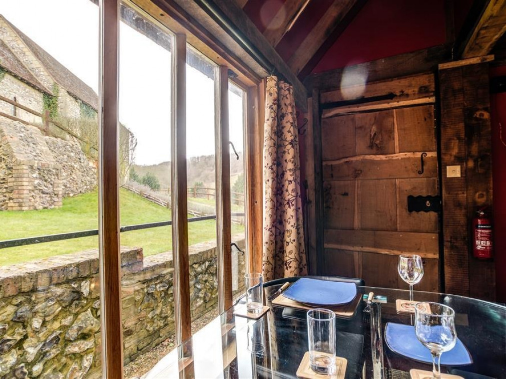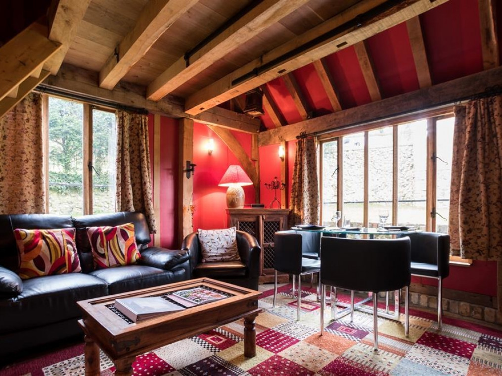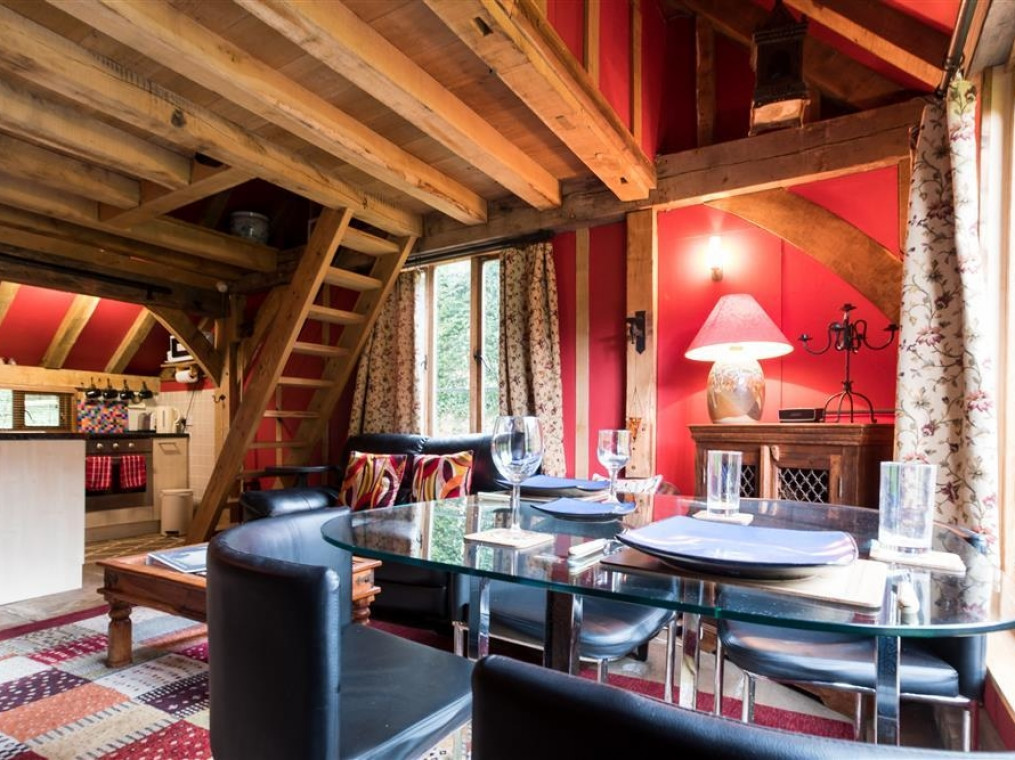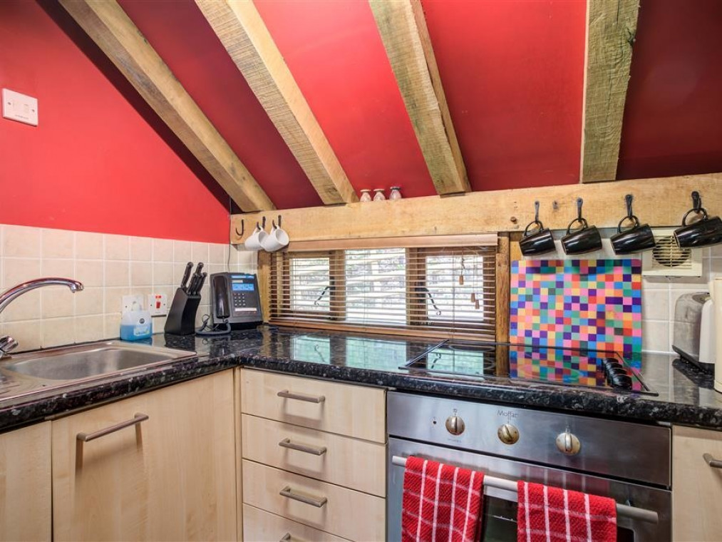 Two bedrooms: 1 x double (4ft 6), hot tub and Ensuite Shower Room/WC, 1 x double (4ft 6). Kitchen Open plan living room with dining area and sofa bed. Shower room, basin and WC. Amenities for Rental Central heating Oven, microwave, fridge, TV with Freeview, DVD player, Air-conditioning unit. Electricity pay as you go meter. Bed linen and towels inc in rent Small, stone paved area at the cottage entrance, access to the two acres of grounds surrounding the cottages and church One well behaved dog welcome. Sorry, no smoking. Short Breaks available all year round. Note: Electricity on £1 /£2 coin-in-slot meter. Note: Unsuitable for children under seven - steep, open tread stairs Note: The hot tub is in the first bedroom.