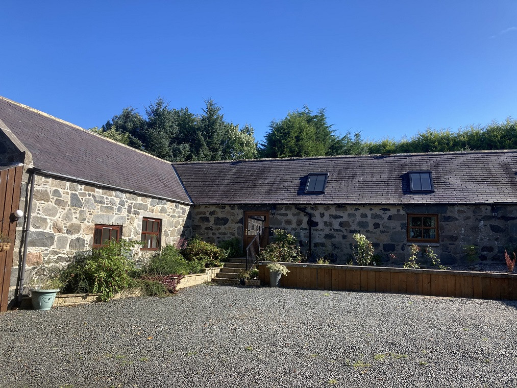 A 500 meter gravel track uphill leads to the comfortable holiday let. Which offers a characterful 19th century detached two-bedroom converted stone steading set within the peaceful grounds of our home. We are located in the village of Kennethmont, near to the charming market town of Huntly.
