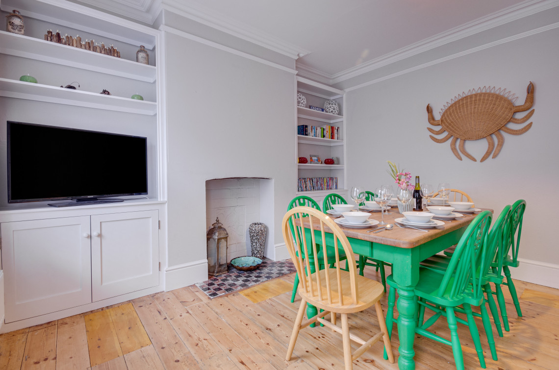 - Outdoors: Enclosed rear garden, garden table and chairs, charcoal barbecue.