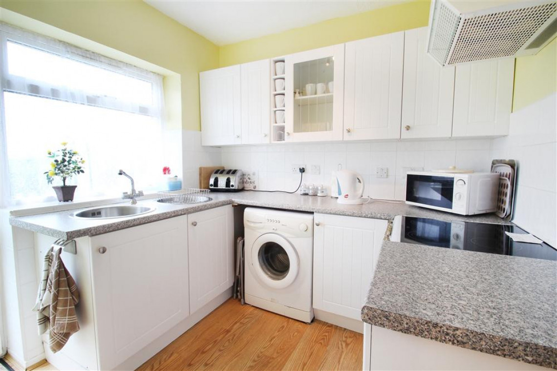 Kitchen: Electric cooker and hob, fridge with freezer box, freezer, microwave, washing machine and tumble dryer.