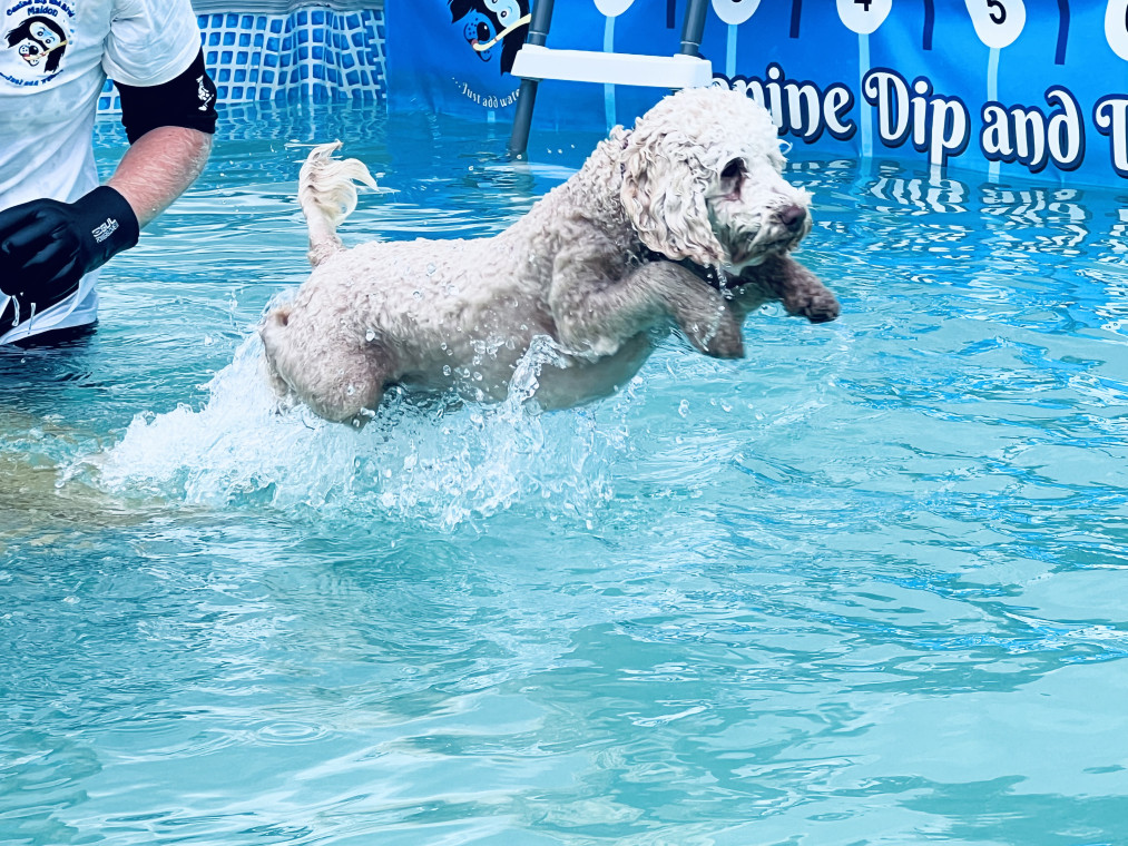 Canine dip and dive is quite simply a 32ft outdoor swimming pool for dogs!