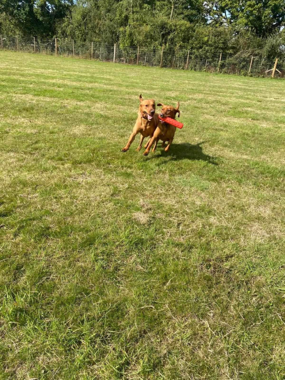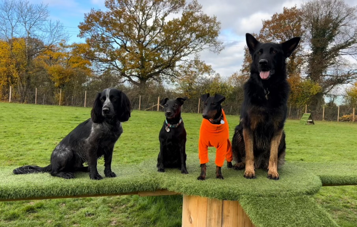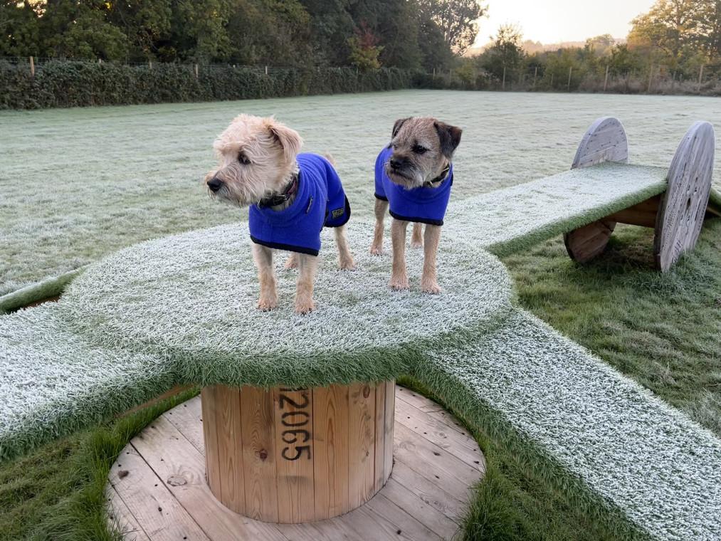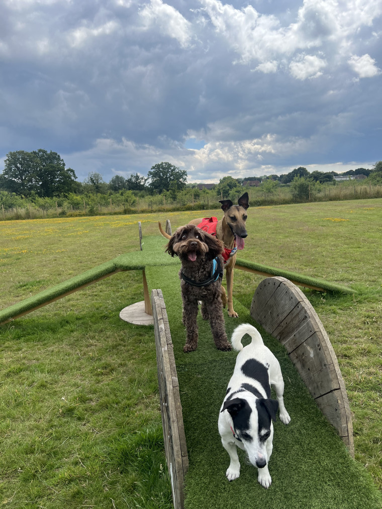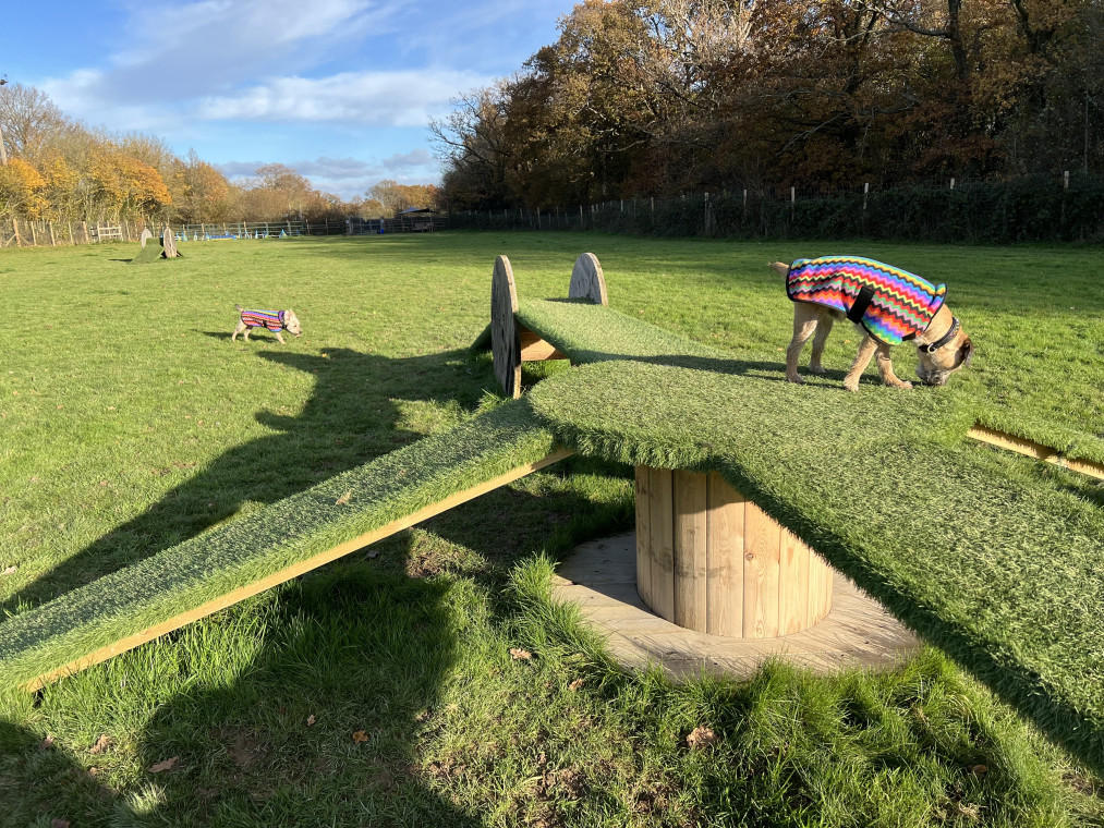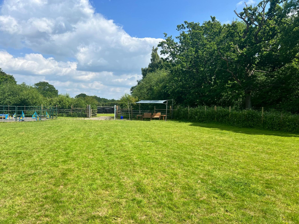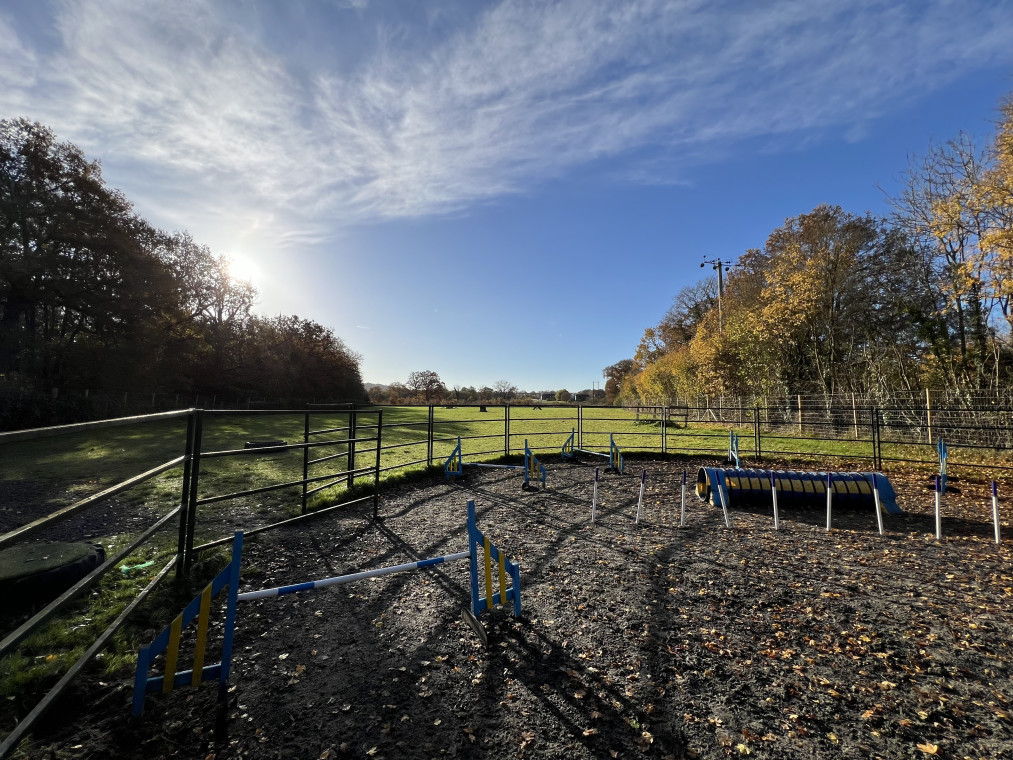 Our 2 acre secure dog walking field is the perfect place to let your dogs run freely off lead in a safe and secure beautiful, quiet rural location. Lovehurst Paddock has a an electric gate entry system into the main parking area and a separate secure hardstanding parking area for 4+ cars. The field has a 6ft gate and perimeter fence. The field has shelter/shade with seating and tables, fresh water and dog bowls. Around the field there are obstacles for the dogs to enjoy and in the sand pen there is agility equipment. The slots are for 50 minutes which allows for a 10 minute swap over period which works well for those visiting with reactive/nervous dogs. The cost of a slot is £10 for up to 4 dogs visiting. Additional dogs can be added by prior arrangement.