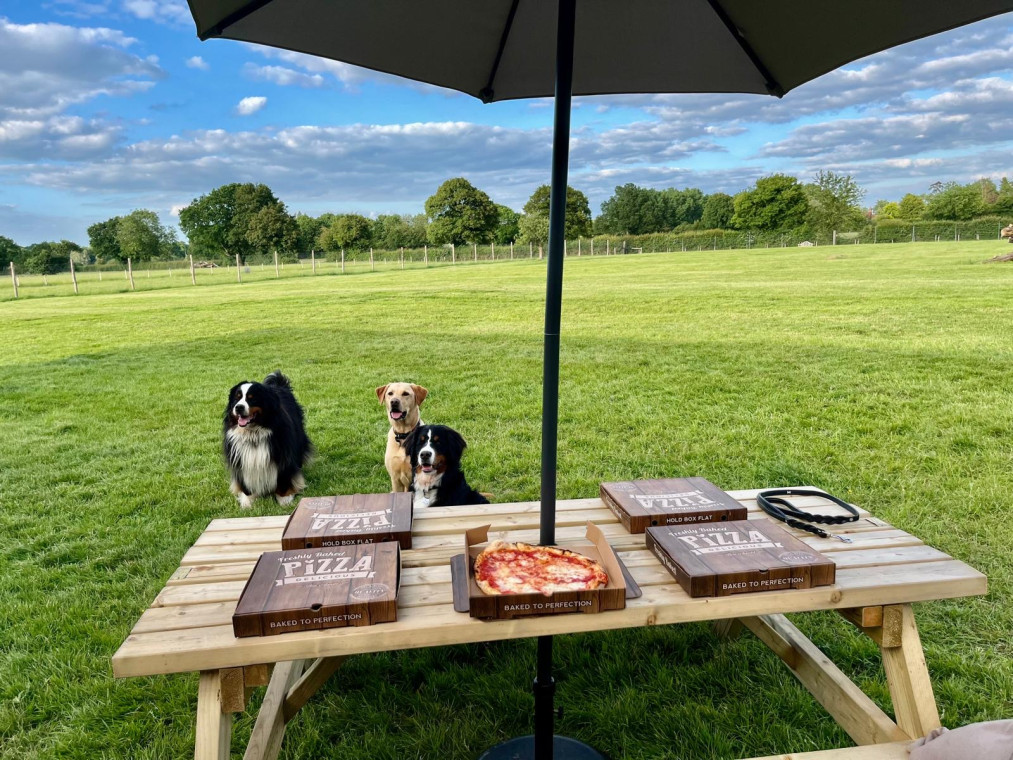 The field is secure and the grass well kept with the added advantage of fresh tapped water, a bowl and even paddling pools in hot weather. There’s a picnic bench with umbrella for sunny days and an undercover seating area for cold/wet ones with umbrellas available for those wishing to venture out and join in the fun!