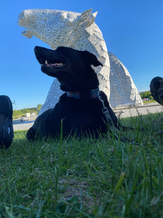 The Kelpies Falkirk great place for a day out or just a few hours plenty of walks along the canal as well as E-bike hire and a route map of all the cycle routes, lots of places to get food and drink, parking was £2 for the day a lovely spot to relax Millie looks like she wants to be the 3rd Kelpie
