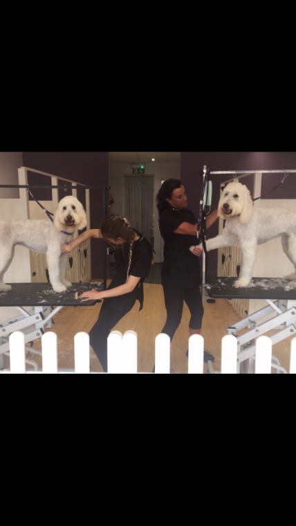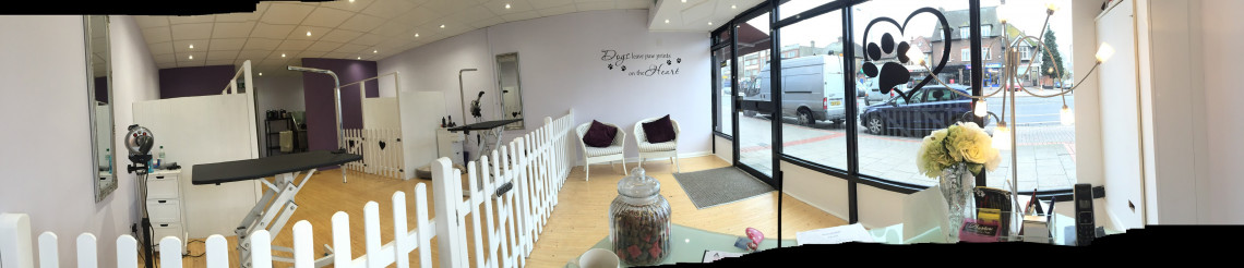 Professional dog grooming salon where we work very differently to others. Dogs are not put in crates and are left freely to have the run of the salon and make friends. Should we have any dogs who are afraid or so not like to socialise, then we have a large open top gated pen where they can make themselves comfortable with a nice cosy bed and toys.