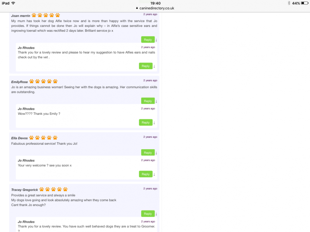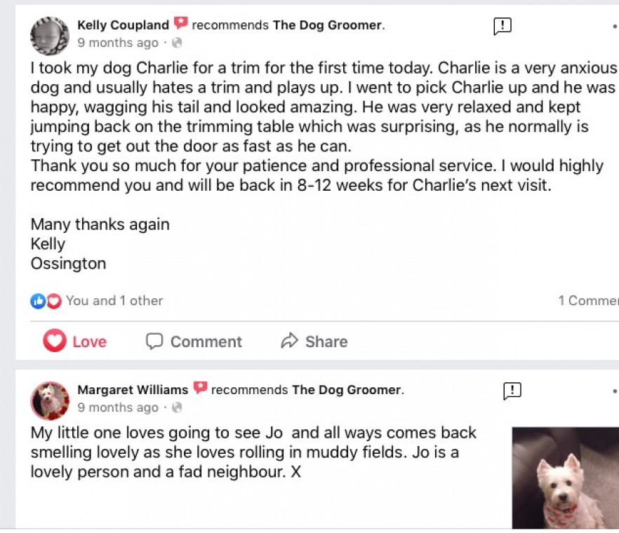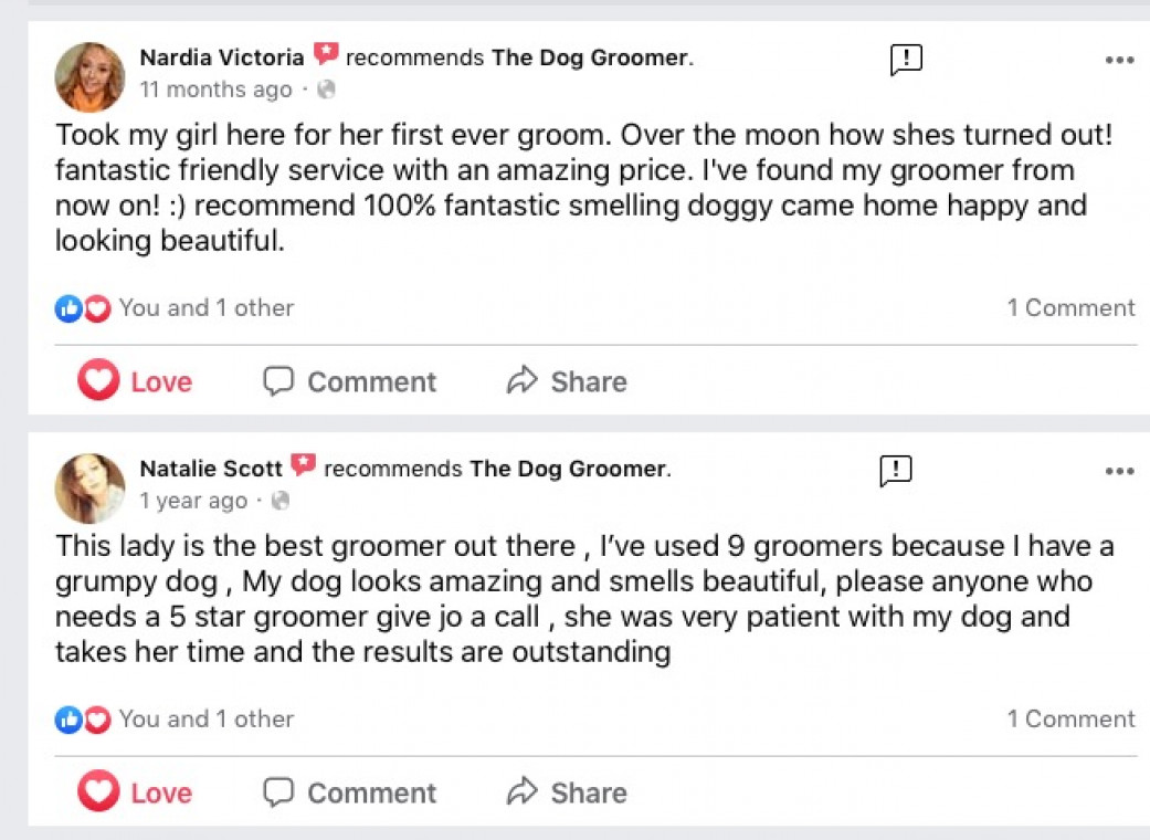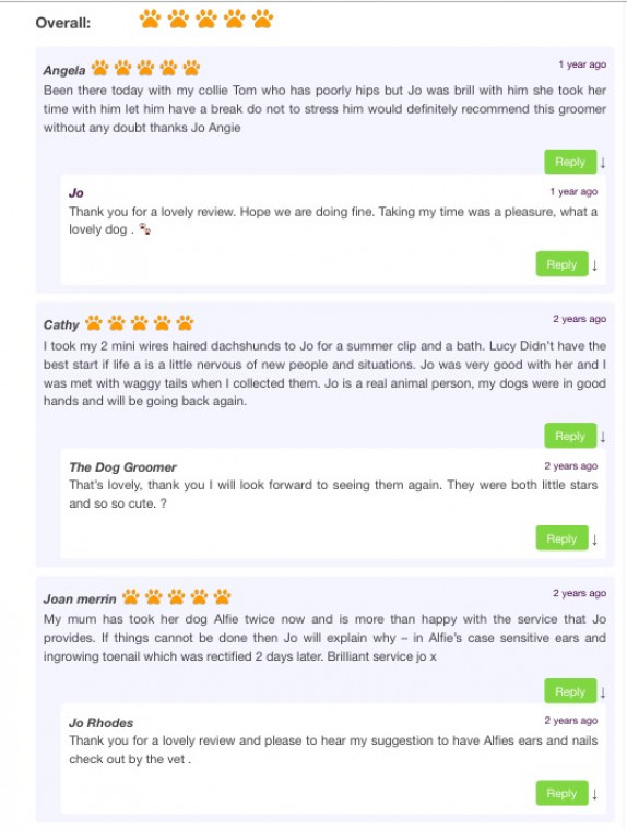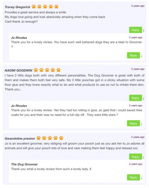 Read MoreHere at The Dog groomer I work with a range of dog breeds large small and cross breeds to meet their unique grooming needs. Keeping your dog in tip top condition. Whether it's a one-off visit or a regular schedule. The Dog groomer has a lovely range of professional dog shampoos. The Dog Groomer has fabulous reviews and continues with on going learning for bring the best and latest techniques to keep all dogs that visit in tip top condition.