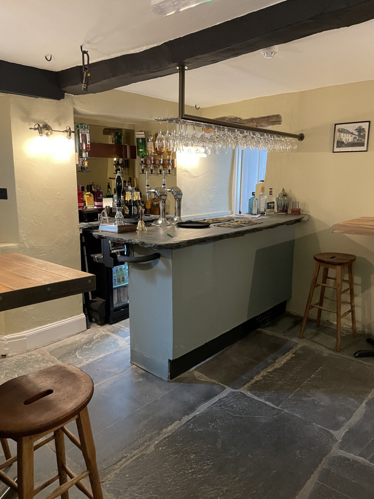 After our walk, we headed back to warm up and settle in. We stayed in a triple room with a double and sofa bed. It was very spacious and decorated beautifully – the coat hanger on the wall was the perfect touch to hang our big coats and dog leads on. Shadow and Roo were treated to a packet of complimentary Sunday Roast flavour treats and soon made themselves at home. We had stunning views of a stream and a flock of Herdwick sheep in an enclosed field next door. While the dogs needed some shut-eye, we were ready for a cheeky tipple and some grub.