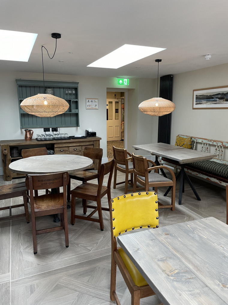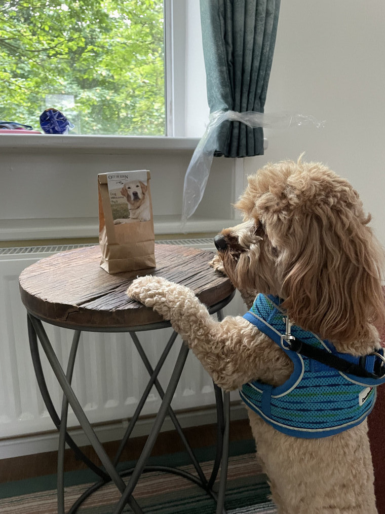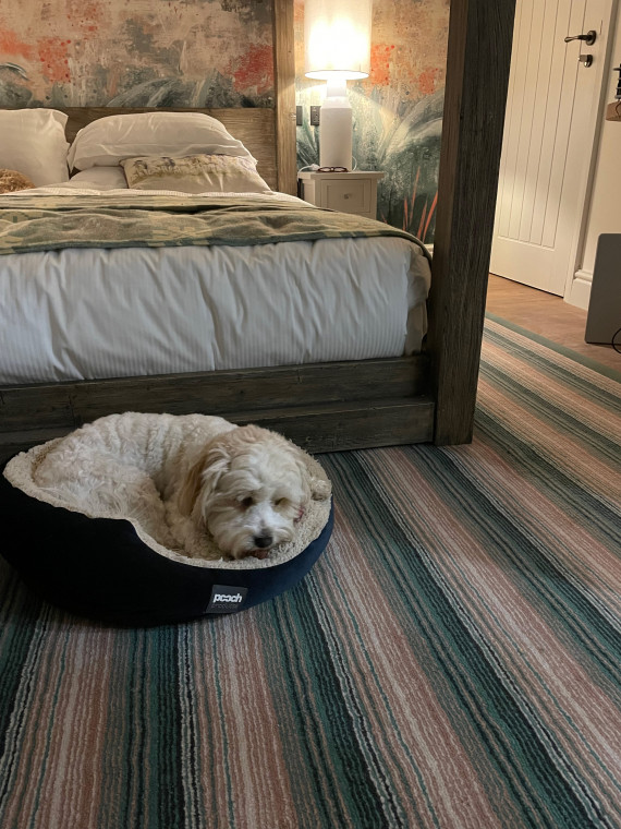 On entering the hotel entrance, we walked through to a lounge area, sectioned off into two rooms, offering cosy and comfortable seating and tables. The perfect place to chat with others staying at the hotel, meet their pups and enjoy a cold pint or glass of wine. Dogs are allowed anywhere in the hotel, except in the dedicated dining areas but you can eat in the lounge areas with your pups.