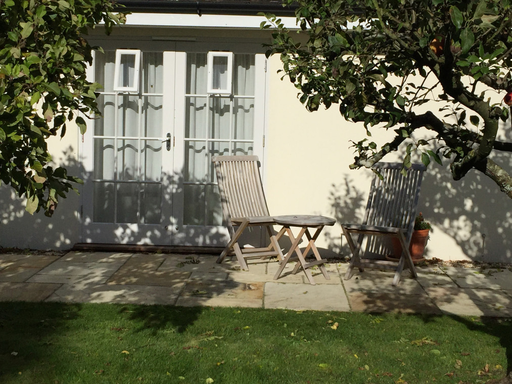 Our room – number three – is clean and spacious, with a door into the garden, which is also helpful if Daisy needs to pop out late or early to avail herself of nature’s facilities. All rooms have french doors leading to the garden, and in summer a table and chairs on the terrace.