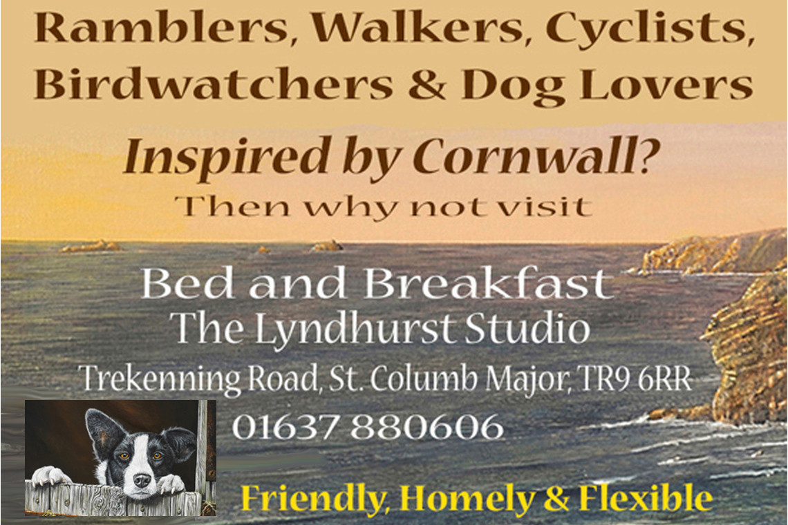 Dog friendly B & B for friendly dogs in the heart of the Cornish countryside. 15 minutes from dog friendly beaches and the towns of Newquay, Padstow and St. Austell. Location: The ancient market town of St. Columb Major in a working artist's studio home which is on a main bus route to all of Cornwall's attractions and locations.